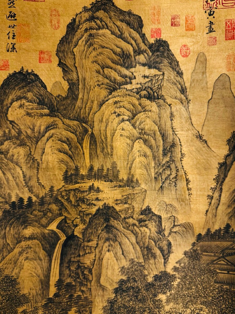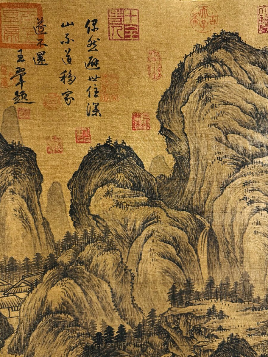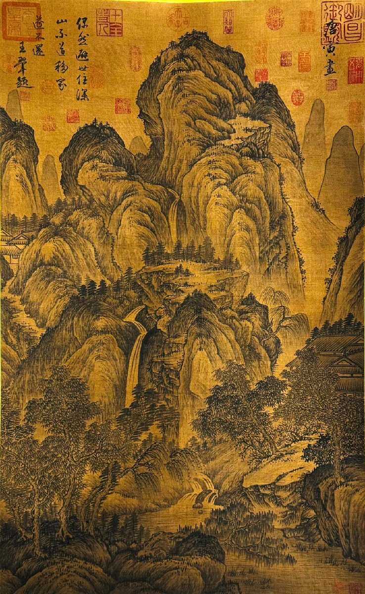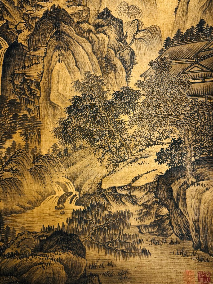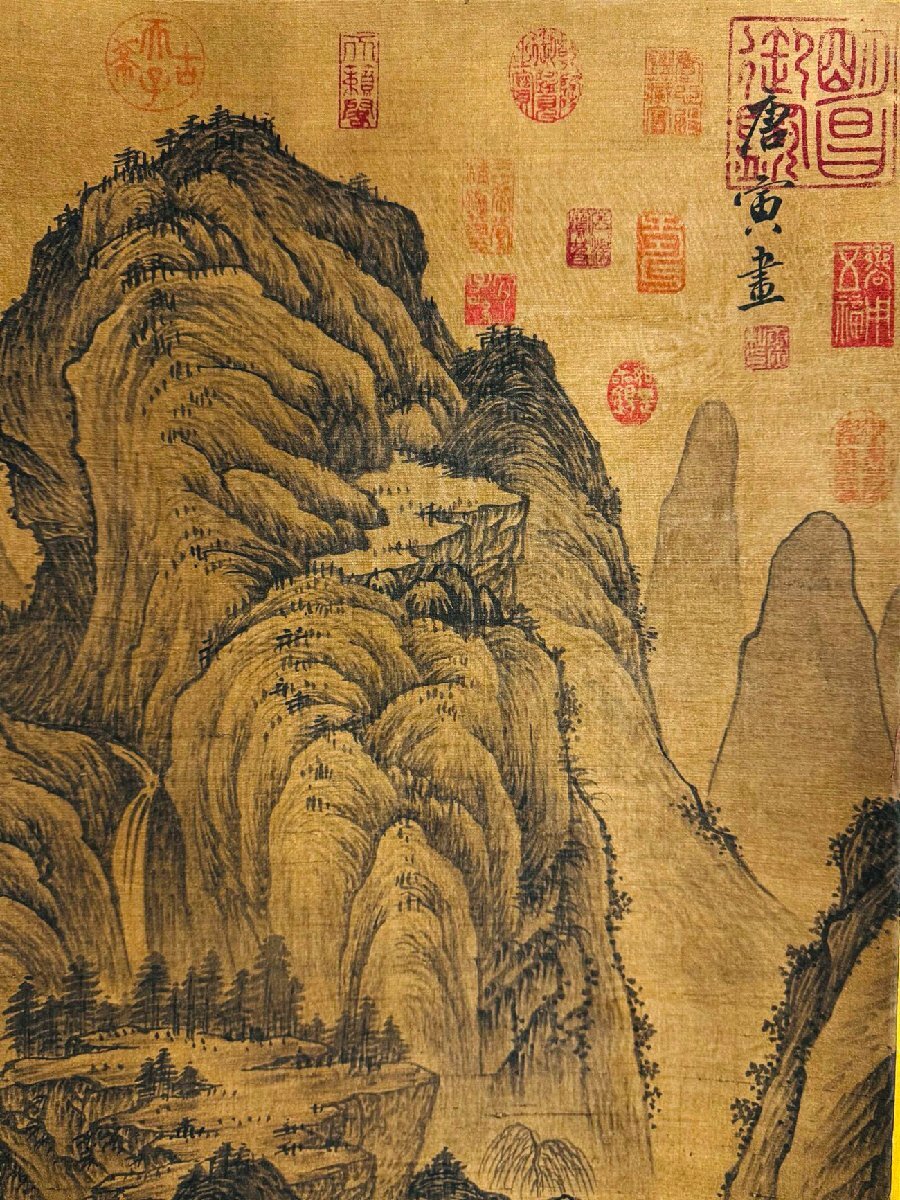 【安】中国明時代画家「唐寅書」絹本「水墨山水図」掛軸 中国画 墨寶妙品 中国書道 古美術 327 サイズ(約寸) |