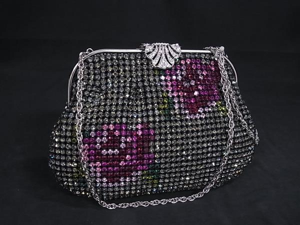 1円 ■新品同様■ BALLY バリー ヴィンテージ ラインストーン チェーン ショルダーバッグ 斜め掛け シルバー系×マルチカラー BN6212