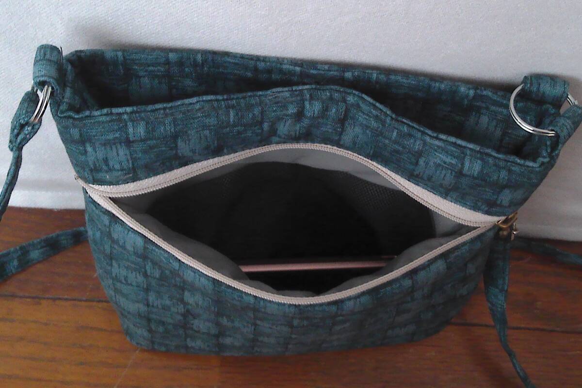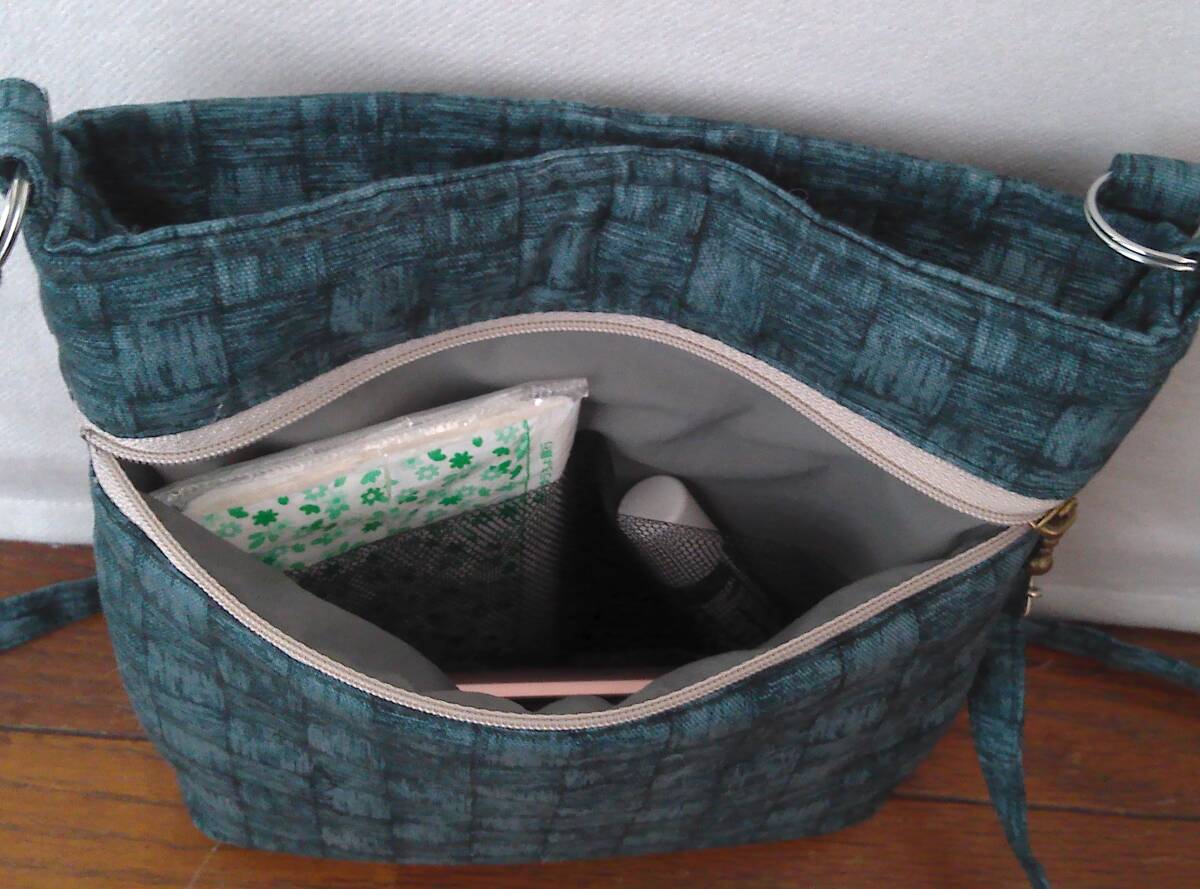 | 前のファスナーポケットにはネットの2分割ポケットを付けました。 |