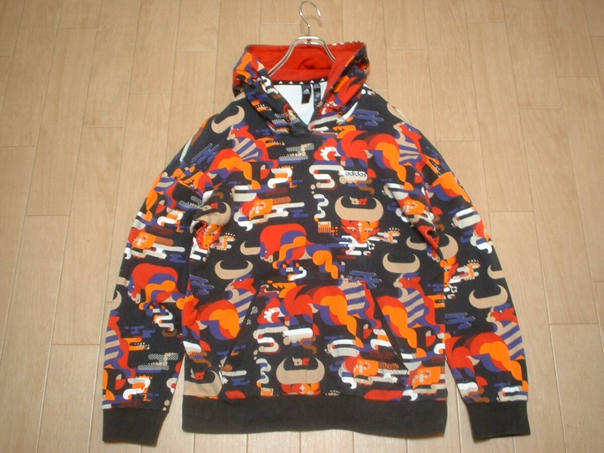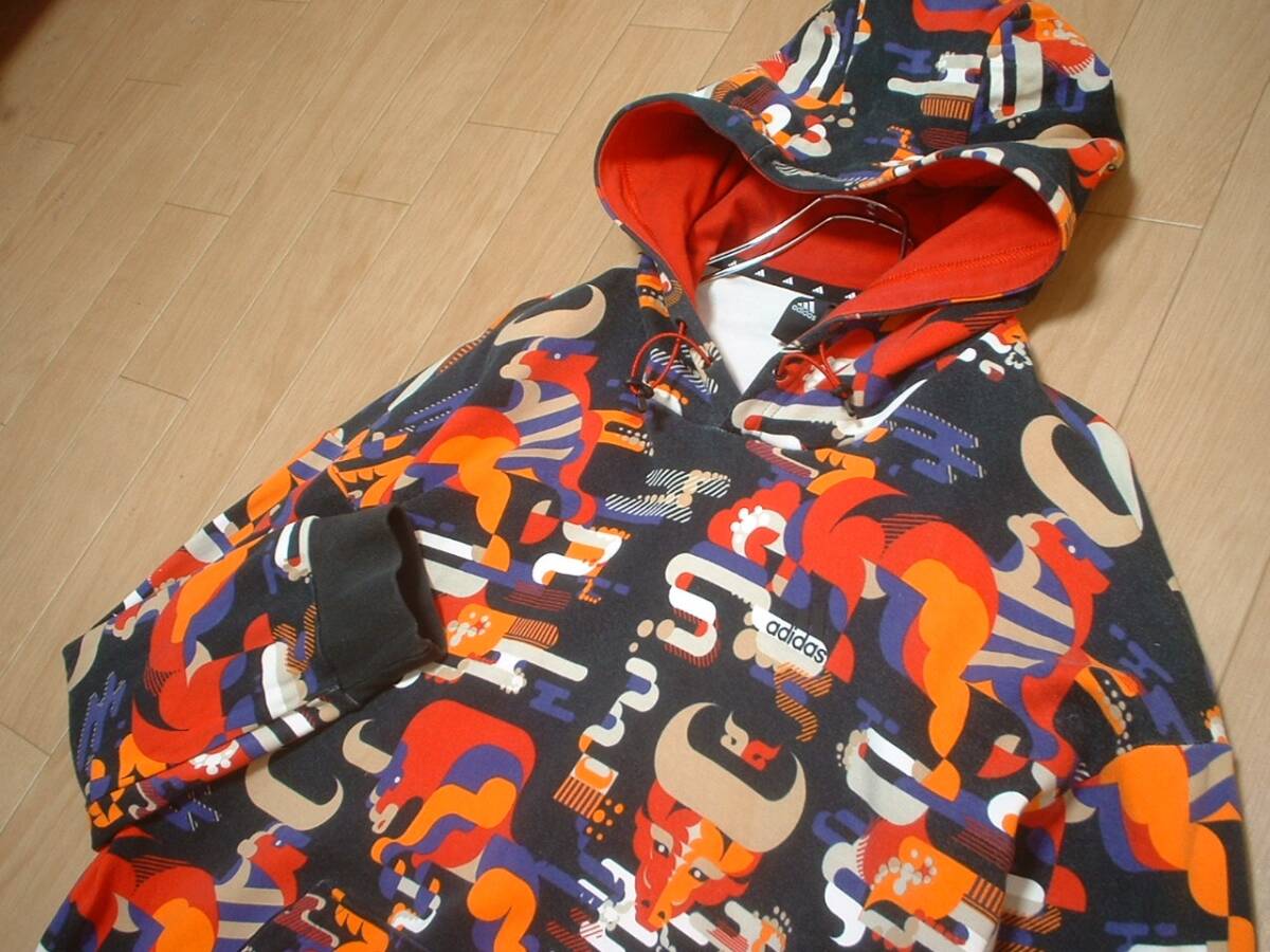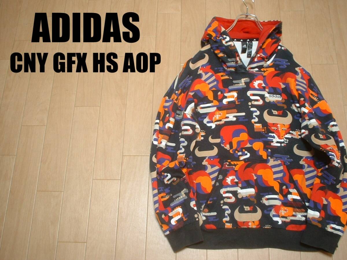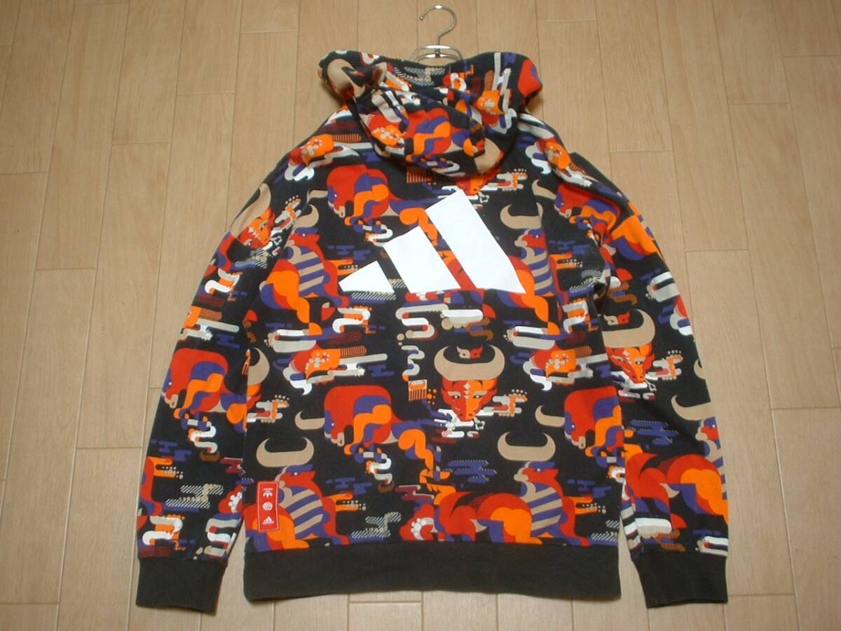 ADIDAS総柄アートCNY GFX HS AOPスウェットパーカーLマルチカラー正規アディダスフーディトレーナージャージトラックジャケットBULLSブルズ