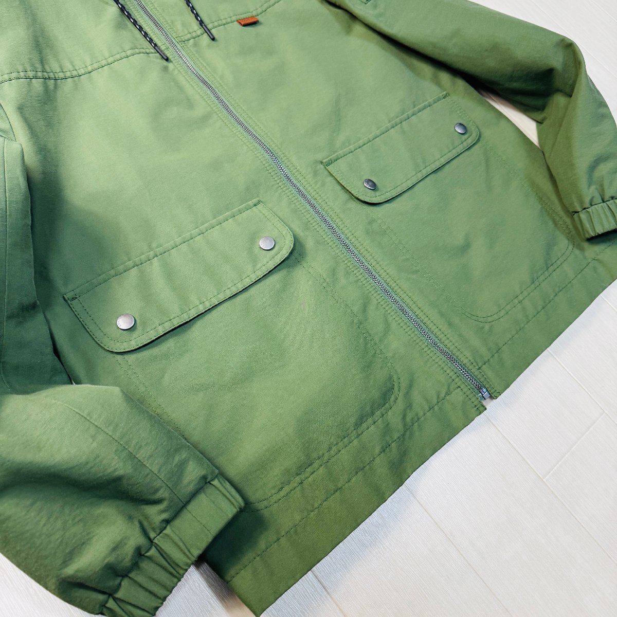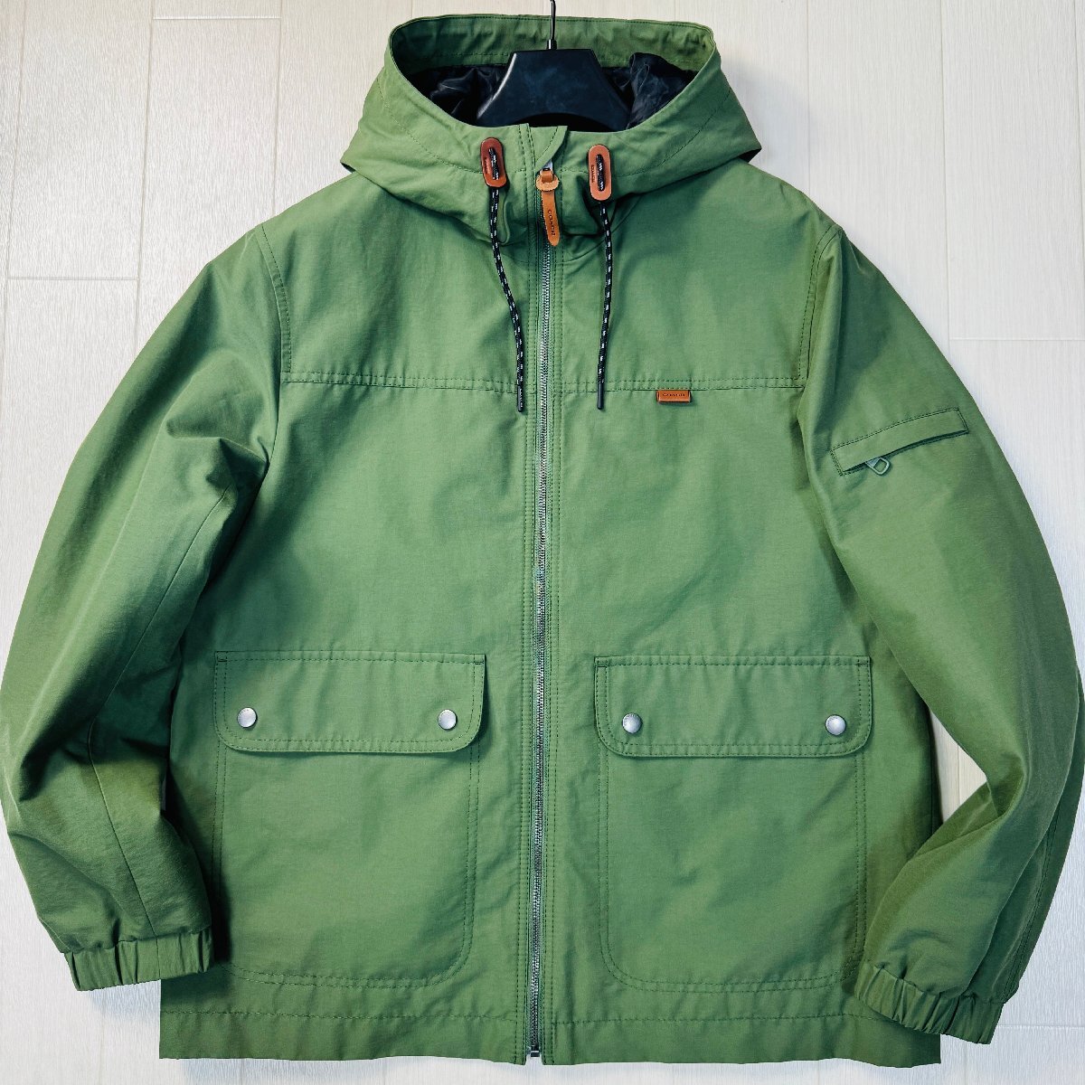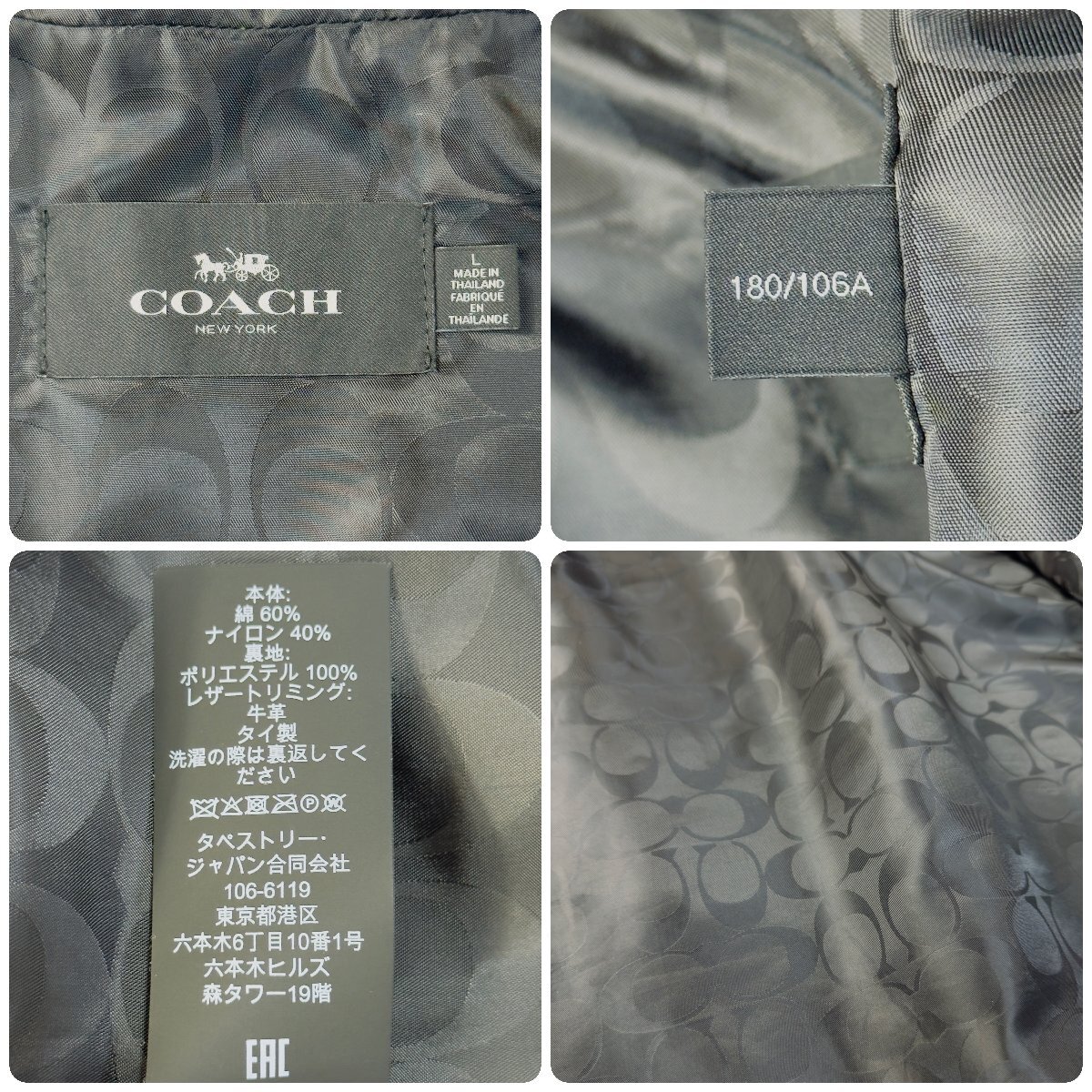 美品/L-XL相当★コーチ COACH シグネチャー総柄 マウンテンパーカー フーデットジャケット ブルゾン 牛革 レザートリミング メンズ カーキ