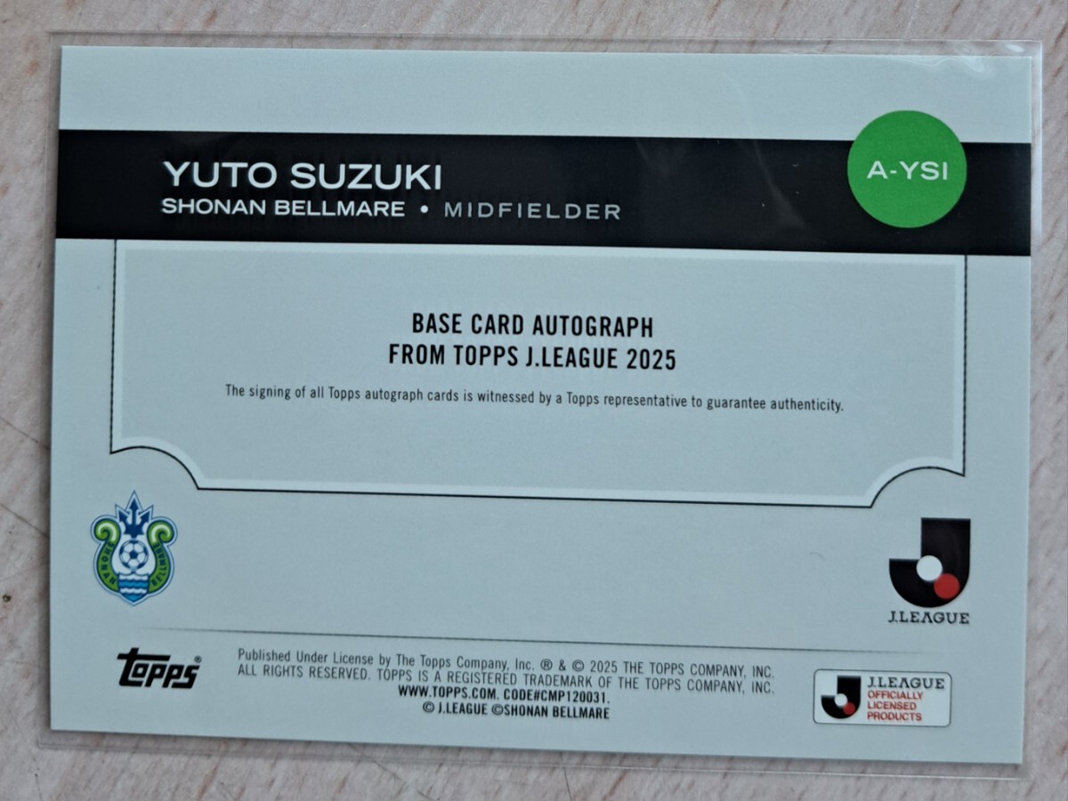 トップス2025Jリーグの鈴木雄斗選手(湘南)の直筆サインカードです。