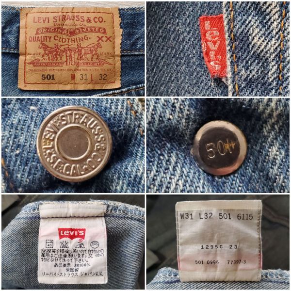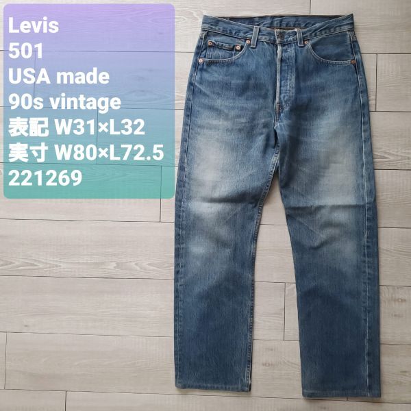 Levisリーバイス 色落ち良好 90s vintage USA製 501 ストレートデニム 14oz W31 実寸W80×L72.5 1996年 コーンミルズ 米国製 古着 ジーンズ
