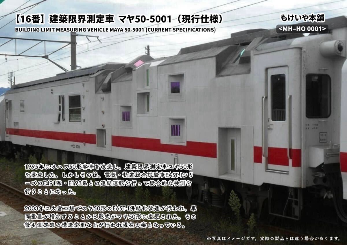 | 【16番】建築限界測定車 マヤ50-5001(現行仕様)3Dプリント・デカール付 制作キット品(1/80・16.5mm・HO) |