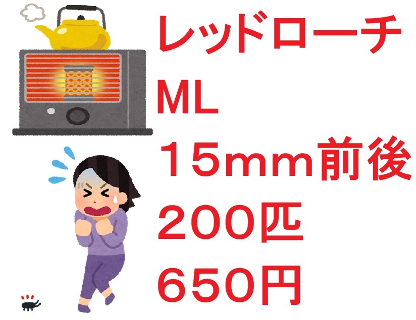 15mm前後のレッドローチです。多少サイズのバラツキがあります。