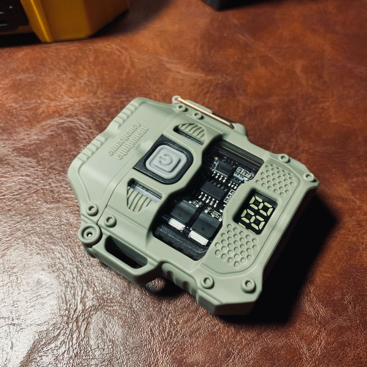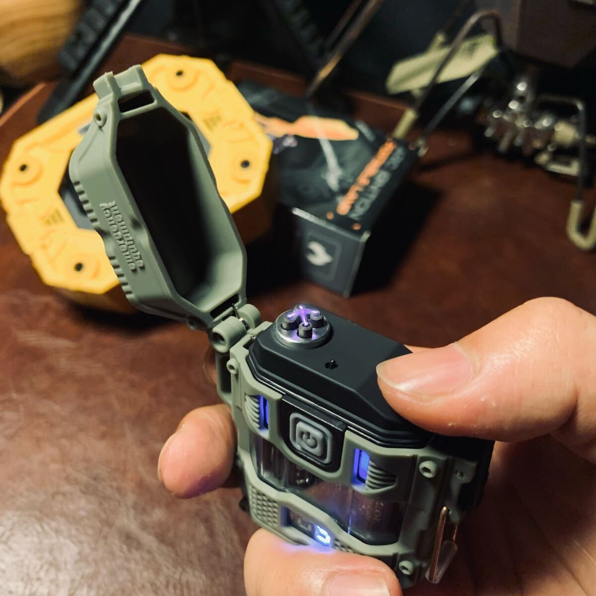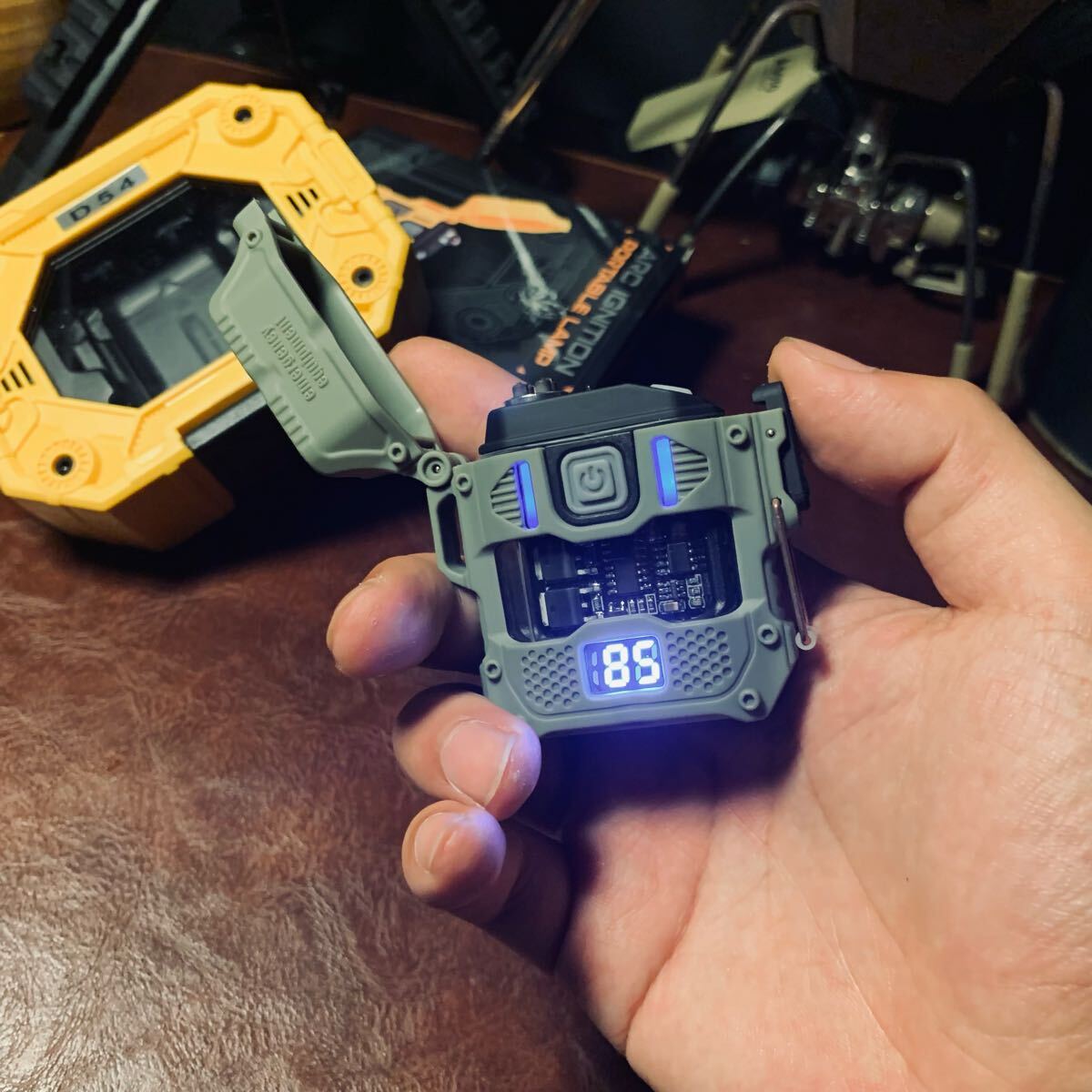 機械風デザイン 多機能アウトドアライト 電弧ライター USB充電式 LED懐中電灯 電量表示 キャンプ 登山 緊急用 携帯便利 収納ケース付
