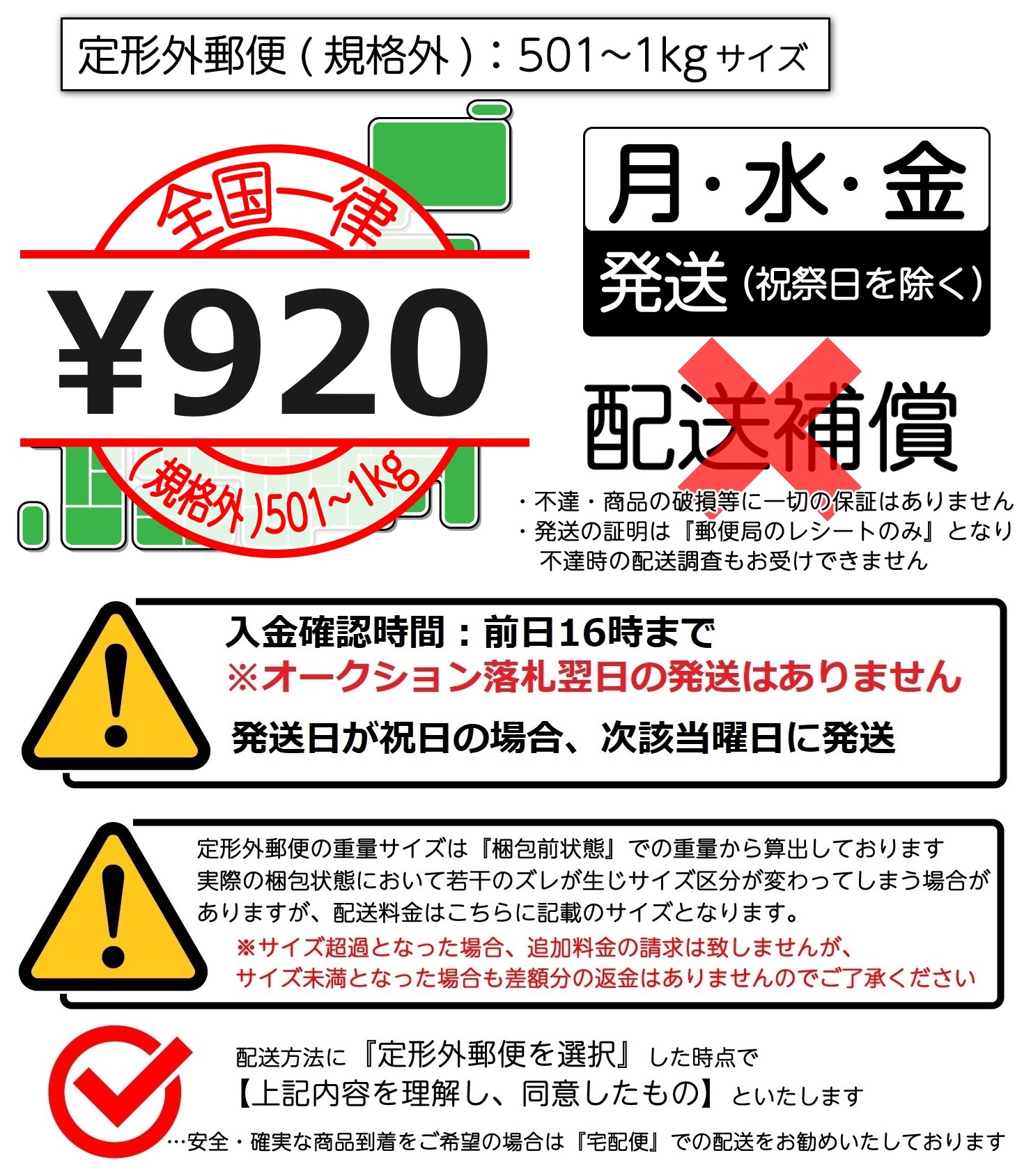 ※同梱可能商品に限ります。 定形郵便や定形外郵便(規格内)と定形外郵便(規格外)の同梱(定形外郵便発送)につきましては 佐川急便をご選択の上、ご要望欄に定形外郵便発送希望とご入力ください。 ご購入手続きが完了ののち、当方より手動で『お支払い総額のご案内』と『送料の変更』をいたします。 ご決済時の注意事項は下記をご高覧願います。 ◆沖縄県・離島への発送、同梱希望の場合のご決済について ■クレジットカード決済、PayPayクレジット 再度オーソリゼーションが行われます。 万が一、通らなかった場合は銀行振込となります。 ■銀行振込の場合 ご案内前の内容ではご決済しないようにお願いいたします。 万が一、不足金額にてご入金いただいた場合、不足分の追加入金の確認ができるまで商品の発送ができませんのでご了承ください。 超過分につきましては、銀行振込にて手数料を差し引いてのご返金となります。 ■コンビニ決済の場合 (※12月はご利用できません) 再度お支払番号を発行いたしますので、新たなお支払番号にてご決済ください。 ■PayPay残高等払いの場合 ご購入手続き時の表示金額より減額・増額により、お手続きが異なります。 減額となる場合: 発送完了日にPayPay側より返金処理となります。 増額となる場合: 変更後の金額で決済を行い、 その後に変更前の金額をPayPay側よりご返金処理となります。 ※増額となる際にチャージ不足の場合には、送料の変更ができない為、発送が行えません。 不足額のみのご決済はYahoo!オークションシステム上、銀行振込のみ対応可能です。 Yahoo!ショッピングヘルプ PayPay残高等払いについて(旧名称:PayPay残高払い・PayPay(残高)) https://support.yahoo-net.jp/PccShopping/s/article/H000011025#changeamount ◆普通郵便でのオプションについて