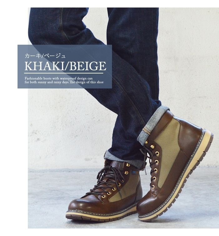 新品■25.5cm リベルト エドウィン EDWIN メンズ ブーツ 防水 レインシューズ レイン スニーカー ハイカット カジュアル 防滑 紐靴