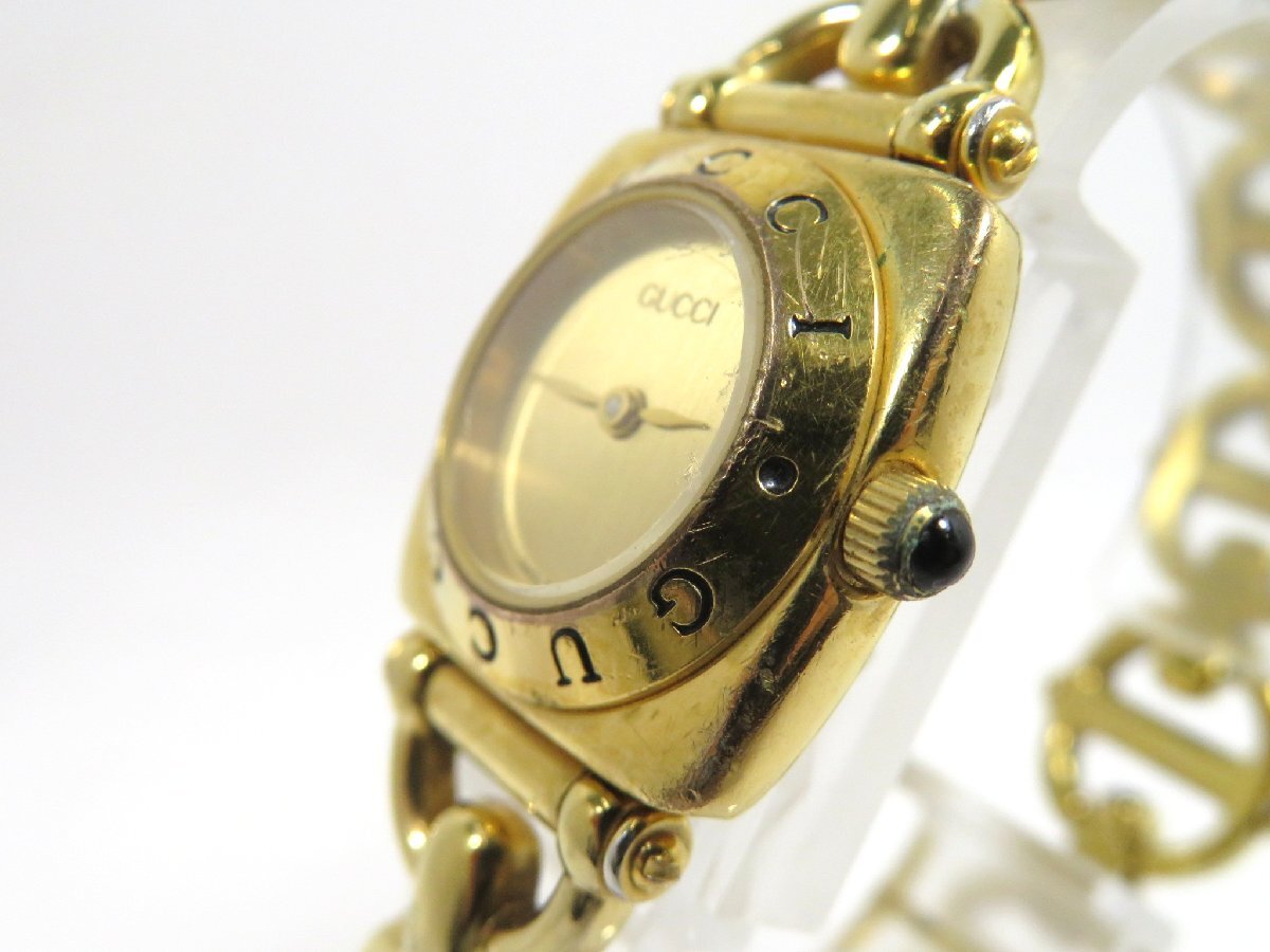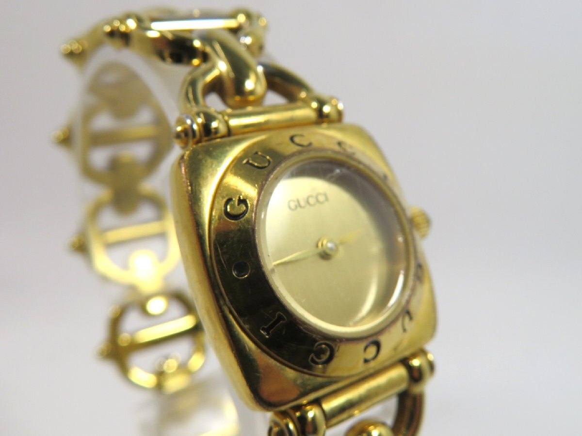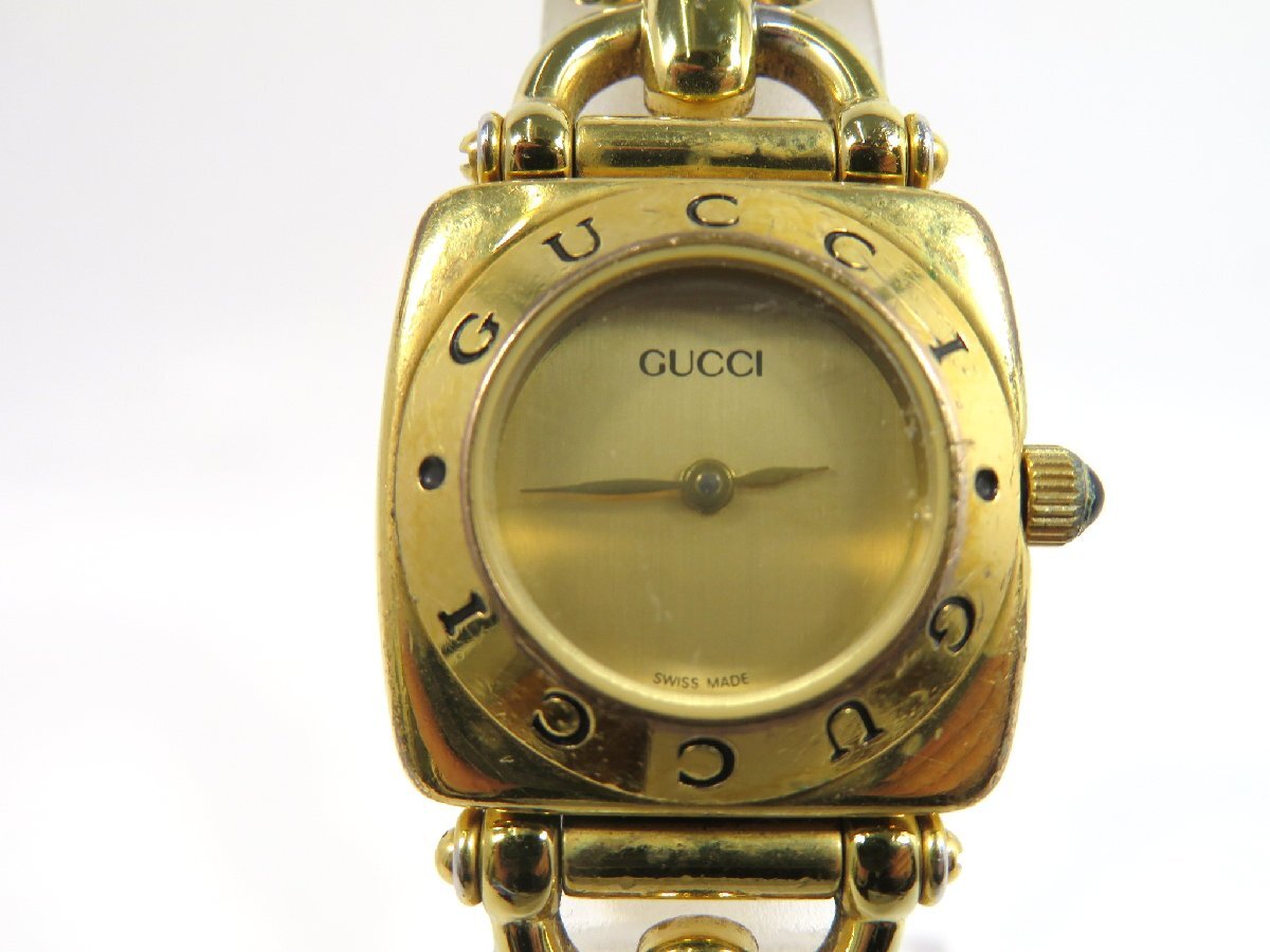 1円開始◆稼働◆ グッチ 6400L ゴールド クオーツ レディース 腕時計 AD27308