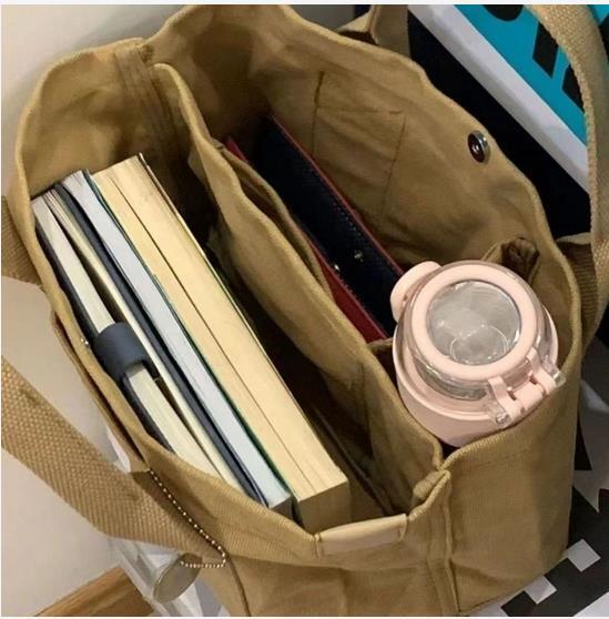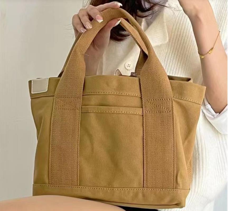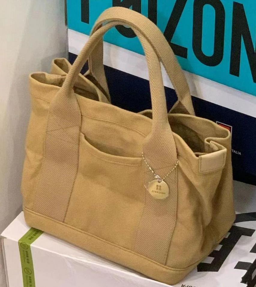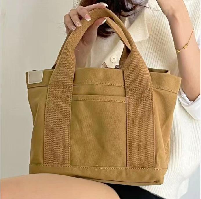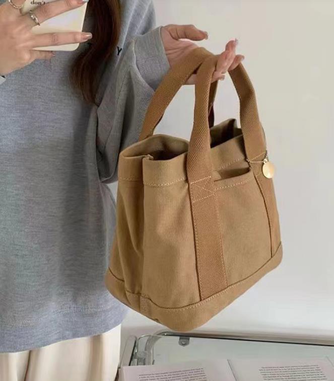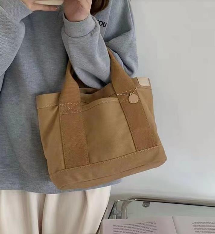 送料無料 匿名 ミニトートバッグ レディース 仕切り キャンバス ミニバッグ 手提げ ブラウン