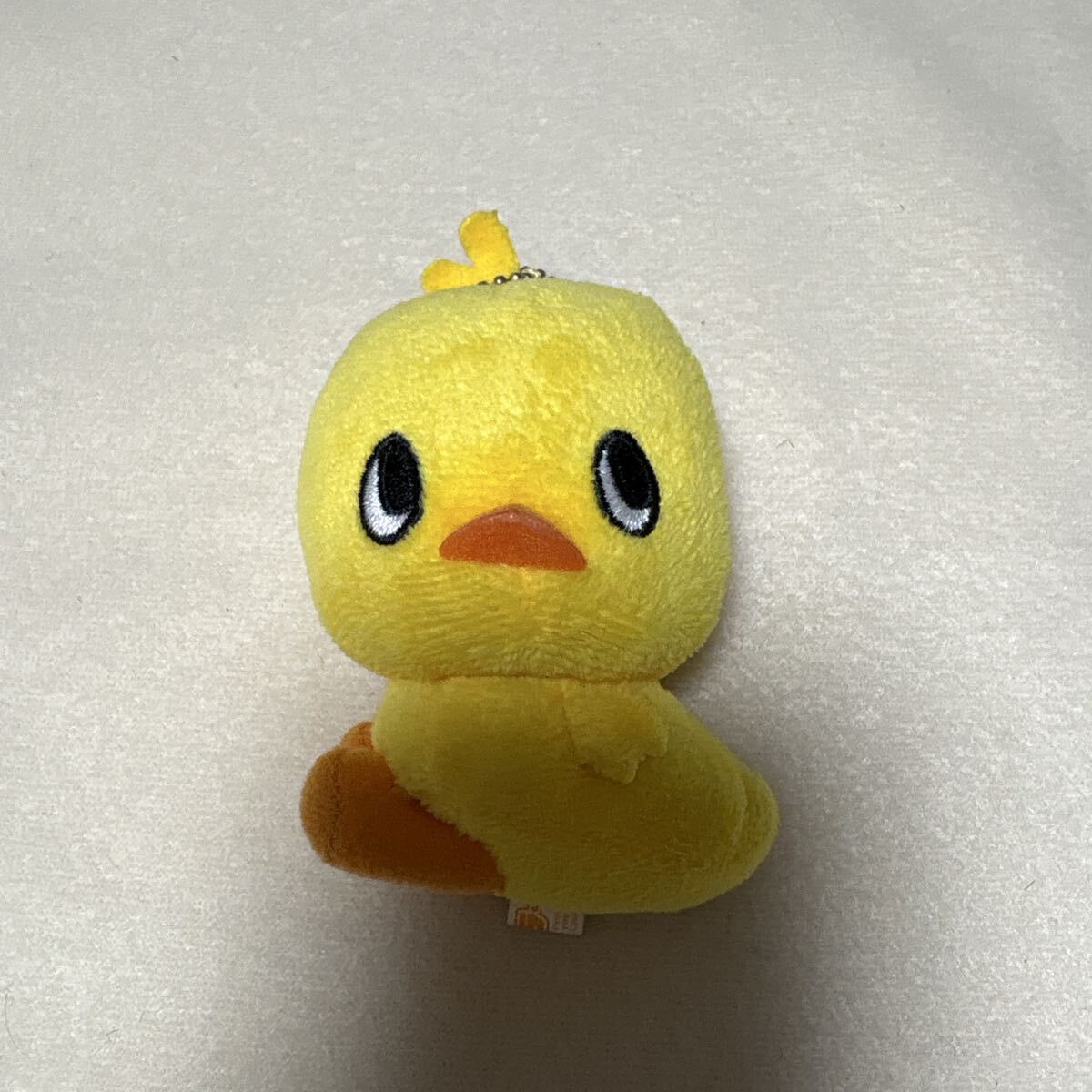 日清チキンラーメンのキャラクター「ひよこちゃん」のぬいぐるみキーホルダーです。
