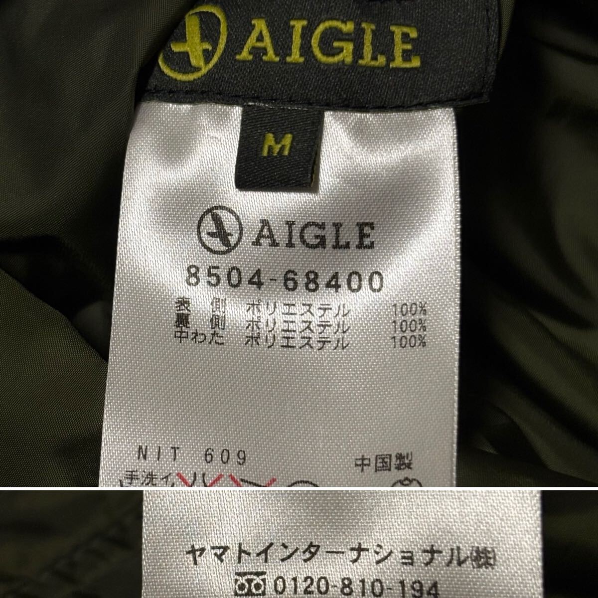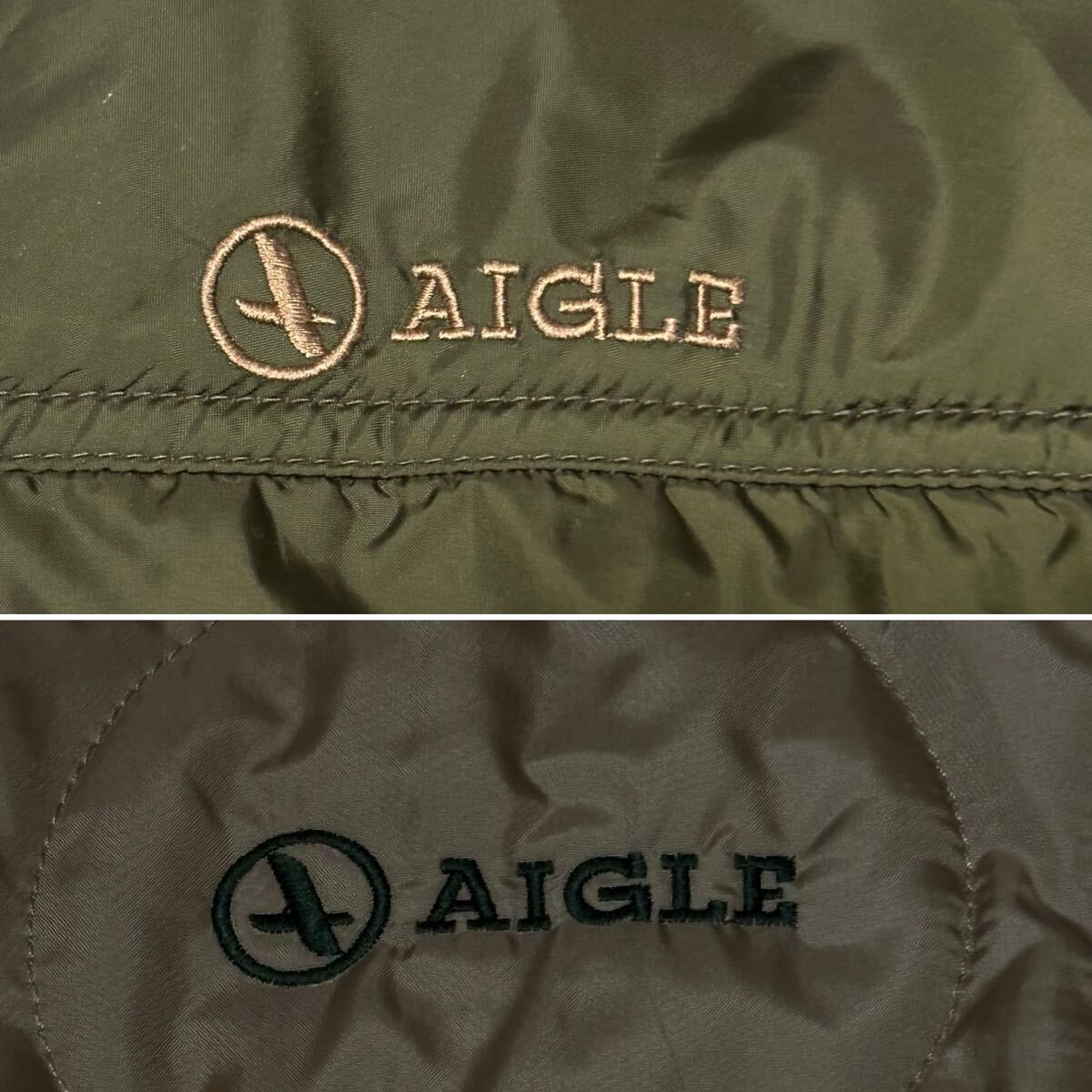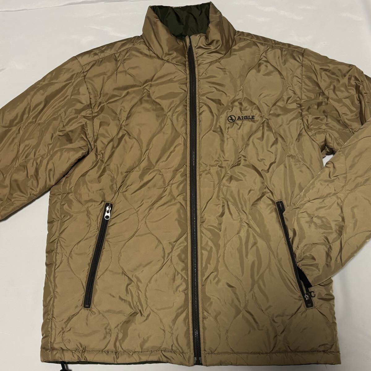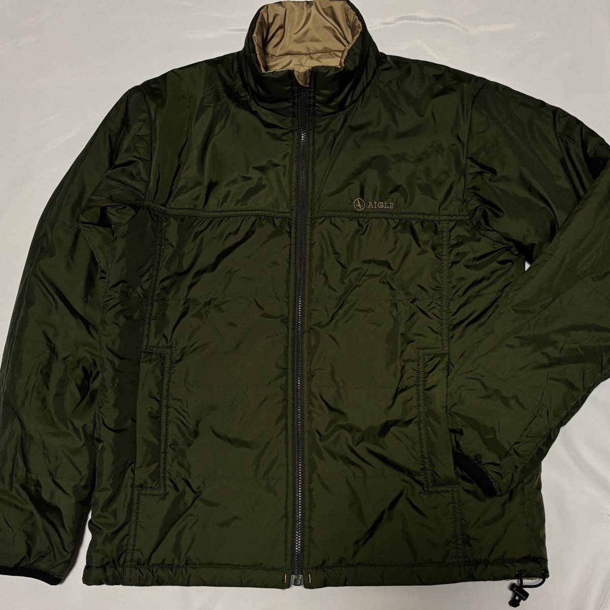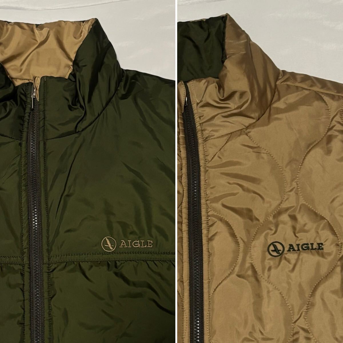 状態良★AIGLE★リバーシブル中綿 ジャケット★カーキーxベージュ★ アウトドア★ エーグル★ヤマトインターナショナル