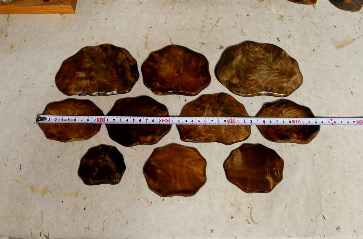 | 【商品説明】 栃のコブ杢地板、いろいろセットでございます。 素敵な和の風情をどうぞ・・♪ ご活用頂ければ幸いです。 (^^) ~~ 弊店のこだわり ~~ 自然木や無垢の天然木は、 製材後、手がけるまでには 長期に渡る十分な乾燥が必要です。 霊峰位山を望む緑にかこまれた地で、 長年にわたり収集したさまざまな木材が 倉庫にぎっしり積まれております。 そんな木々を少しずつ掘り出し、 新たな出会い・感動を感じながら 日々を重ねております。 自然木、大自然の恵みは それぞれユニークな表情、 個性があり、まさに我が子の ようにいとおしく感じます。(^^; 味わい深い銘木の世界、 ご一緒にお楽しみ頂ければと 心から願っております。 ~^^~^^~ 大自然が生み出す神秘、 まさに「一期一会」の世界! どうぞお楽しみ下さいませ。 ありがとうございます。 いつも感謝しております。 m(__)m |