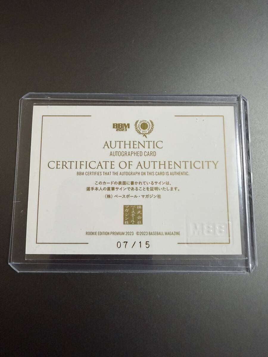 2023 BBM ルーキーエディションプレミアム 門別啓人 直筆サイン 15シリ RC ルーキー 阪神タイガース