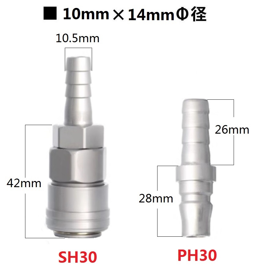 新型ワンタッチエアーカプラー☆SH30+PH30オスとメス2組セット ☆ホースサイズ10x14mm