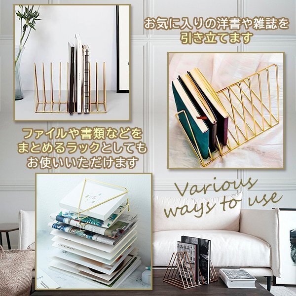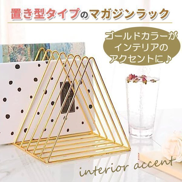 アイアン ブックスタンド マガジンラック トライアングル ゴールド 本立て おしゃれ 可愛い インテリア 収納 韓国雑貨