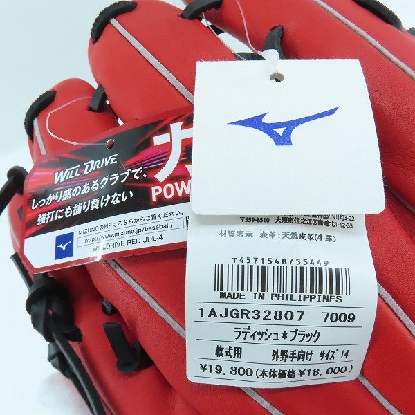 | 【未使用】MIZUNO/ミズノ ウィルドライブレッド IBE 軟式 外野手 右投げ用1 グローブ 1AJGR32807 7009 /080 | |||||||||||||||||||||||||