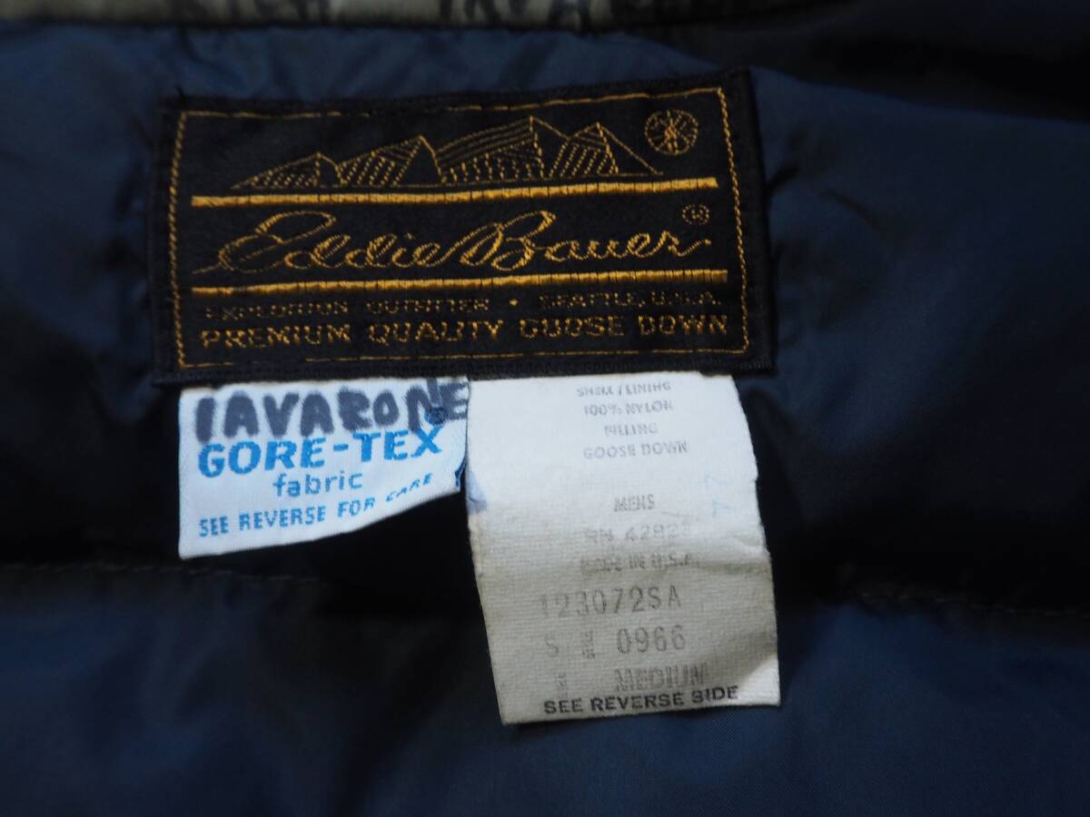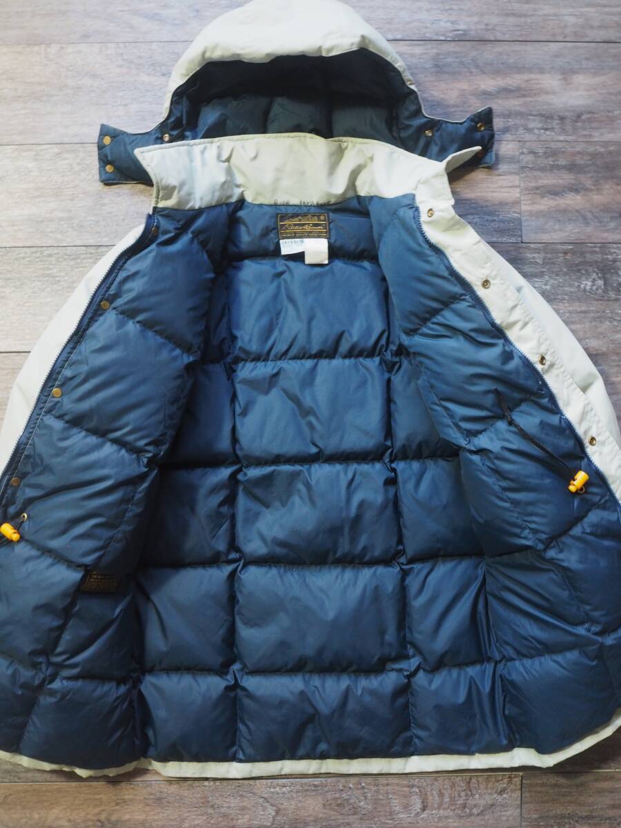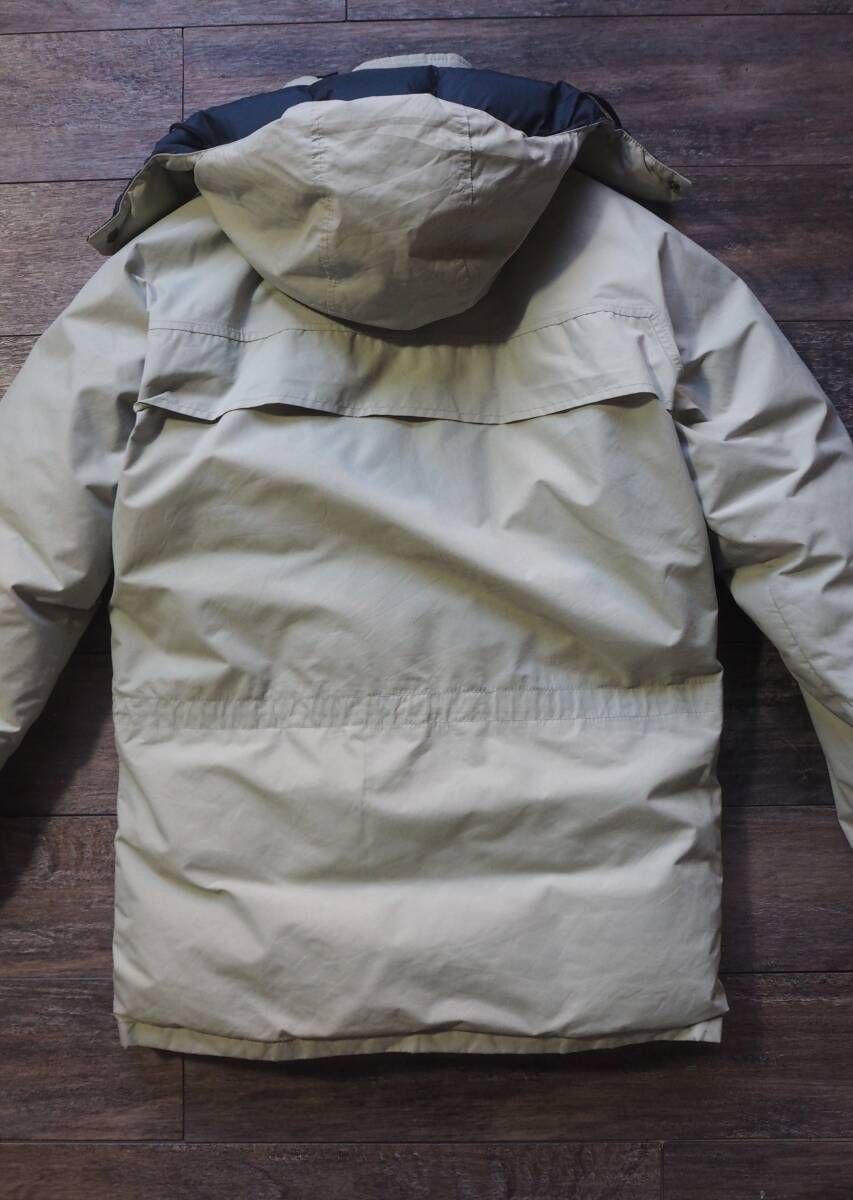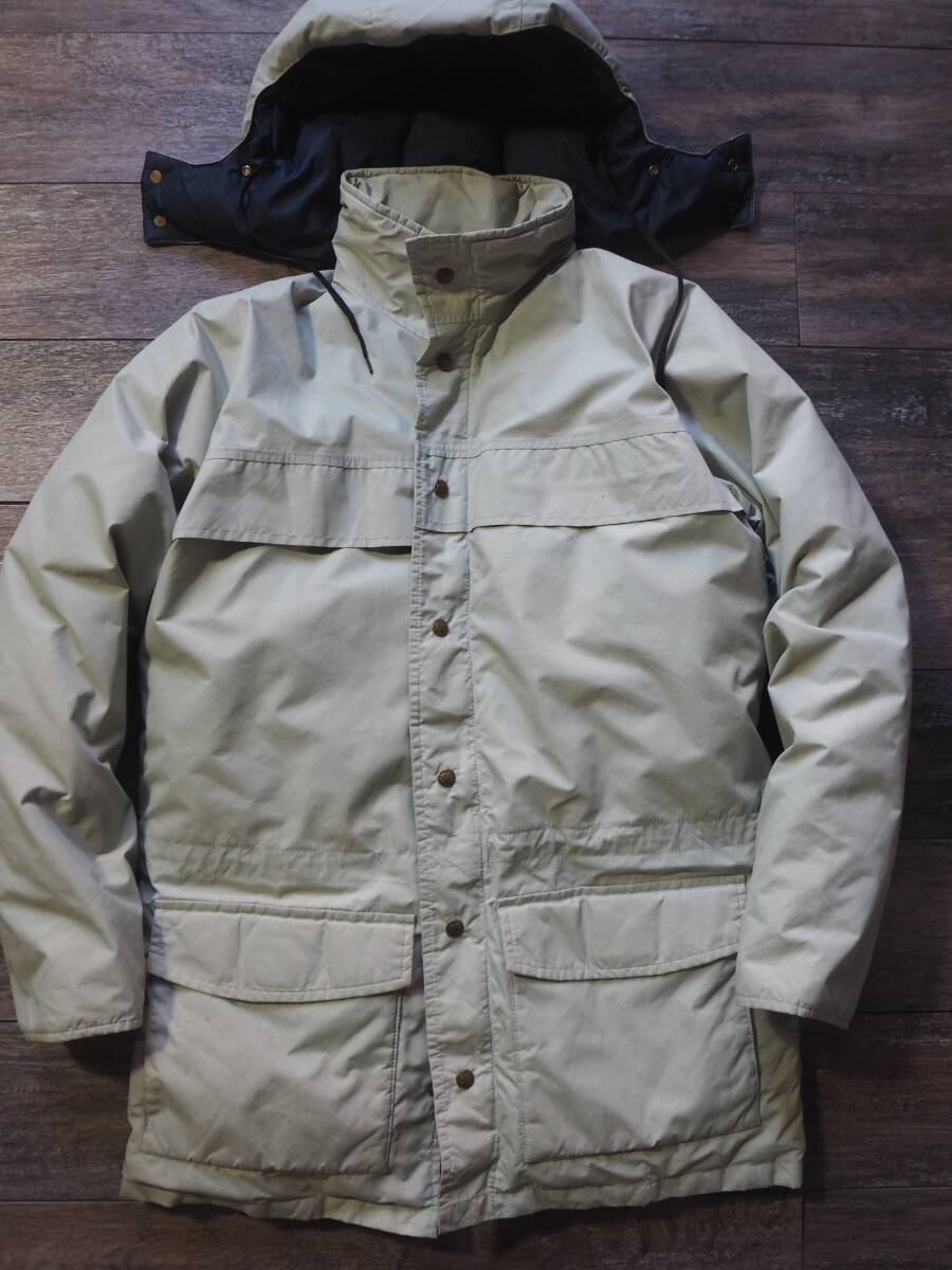 こちらは90年代初頭、黒タグエディーバウアー 高級ライン ダウンジャケットです。 アウターシェルに防水透湿性に優れたゴアテックスラミネートが施し、インシュレーションにはプレミアムクオリティ・グースダウンを贅沢に使用。 脱着式のフードに加え、外気の侵入も防ぐ事が可能なドローコードを配し極寒時にも耐ええる一着です。 保管状態が良く当時ハイスペックモデルを十分に味わえます。 90s Eddie Bauer 黒タグ 高級ライン GORE-TEX グースダウンジャケット USA製 size USA-M 素材 シェル 100% NYLON Filling GOOSE DOWN 裏地 100% NYLON YKK VISLONダブルジップ、ドローコード、フード付属。 裾のドローコードは欠品と思われます。 MADE IN USA 実寸 身幅 64cm 裄丈 90cm 着丈 86cm コンディション 右ポケット部の僅かな汚れ跡程度。あまり気にならないレベルですがビンテージ品につきご理解頂ければと思います。ネームはアジ程度の感覚で全体的に綺麗です。ジップは普通に使用できますがダブルジップの下側を上げる際はたまに引っかかりますので丁寧にお願いします。上側は全く問題ありません。 張りのあるシェルの質感やタフな作り、優れた保温性等、USA製80sエディならではの一着です。 サイズ感は日本人相当でL程度です。 宜しくお願い致します。 | ||||