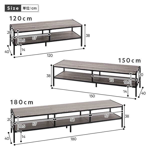 ・幅180cm:(約)幅180×奥行40×高さ38cm