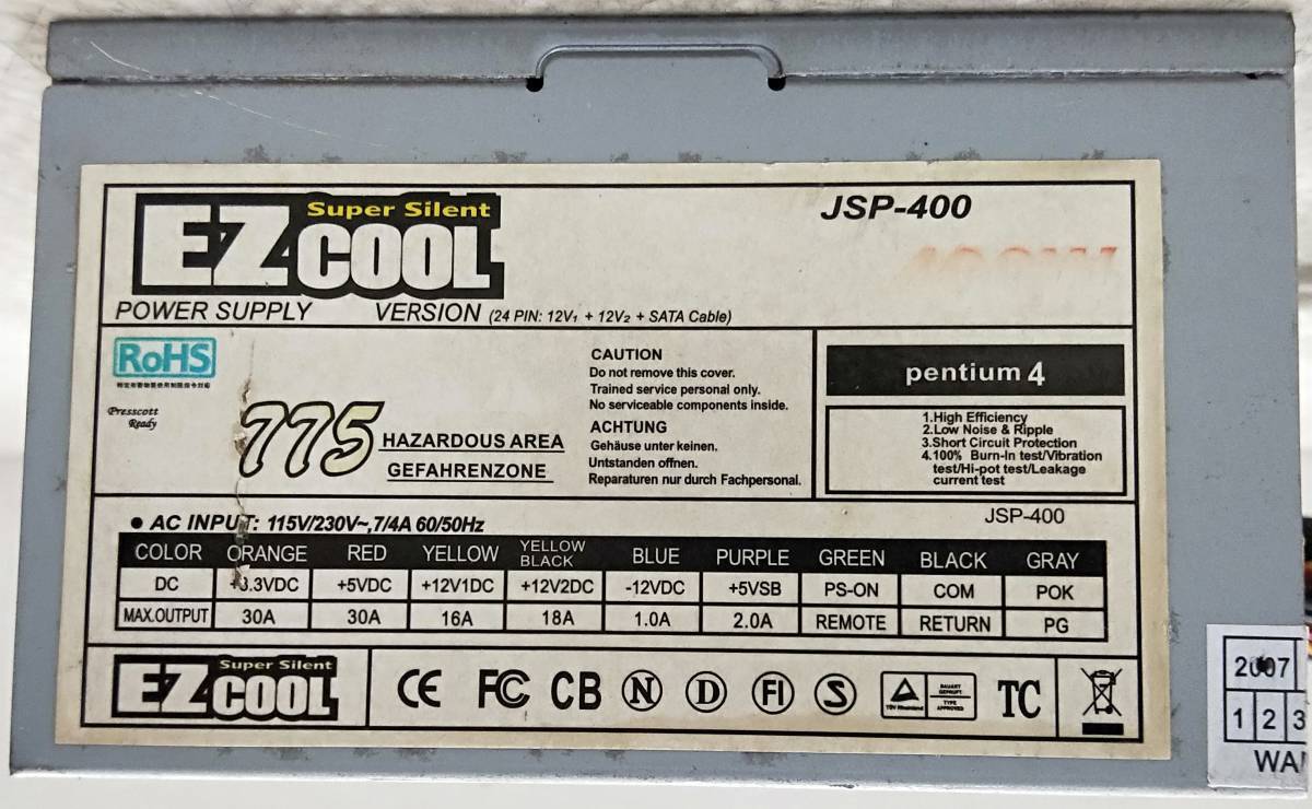 【中古パーツ】 EZCOOL JSP-400 400W 電源ユニット 電源BOX 80PLUS ■DY2428