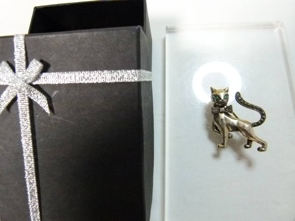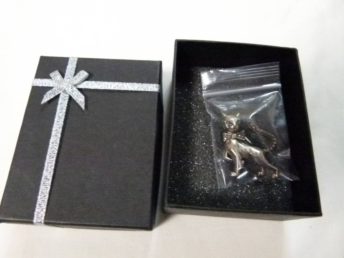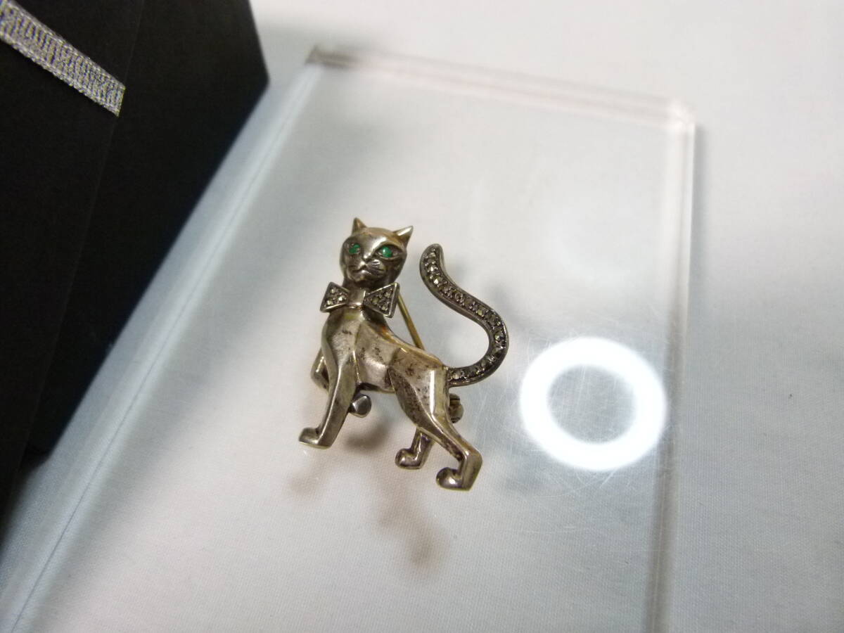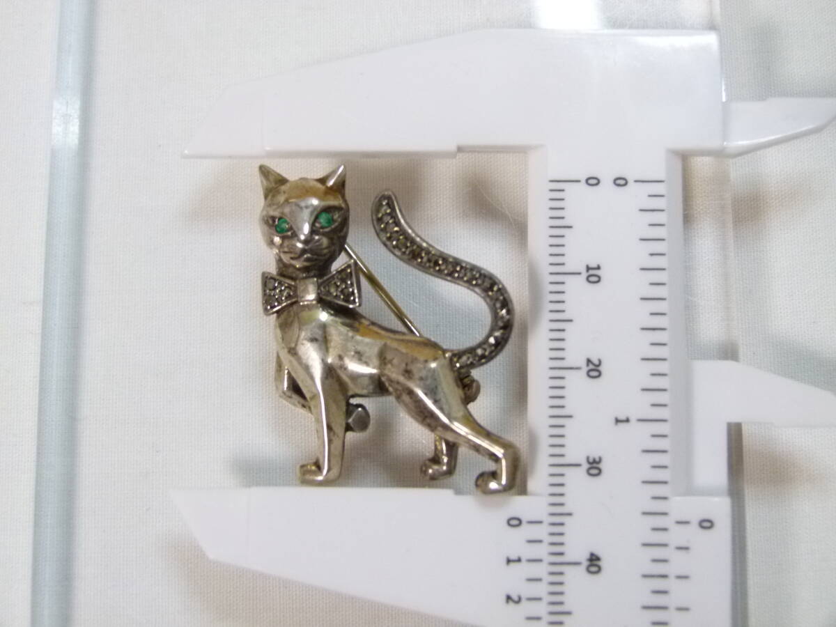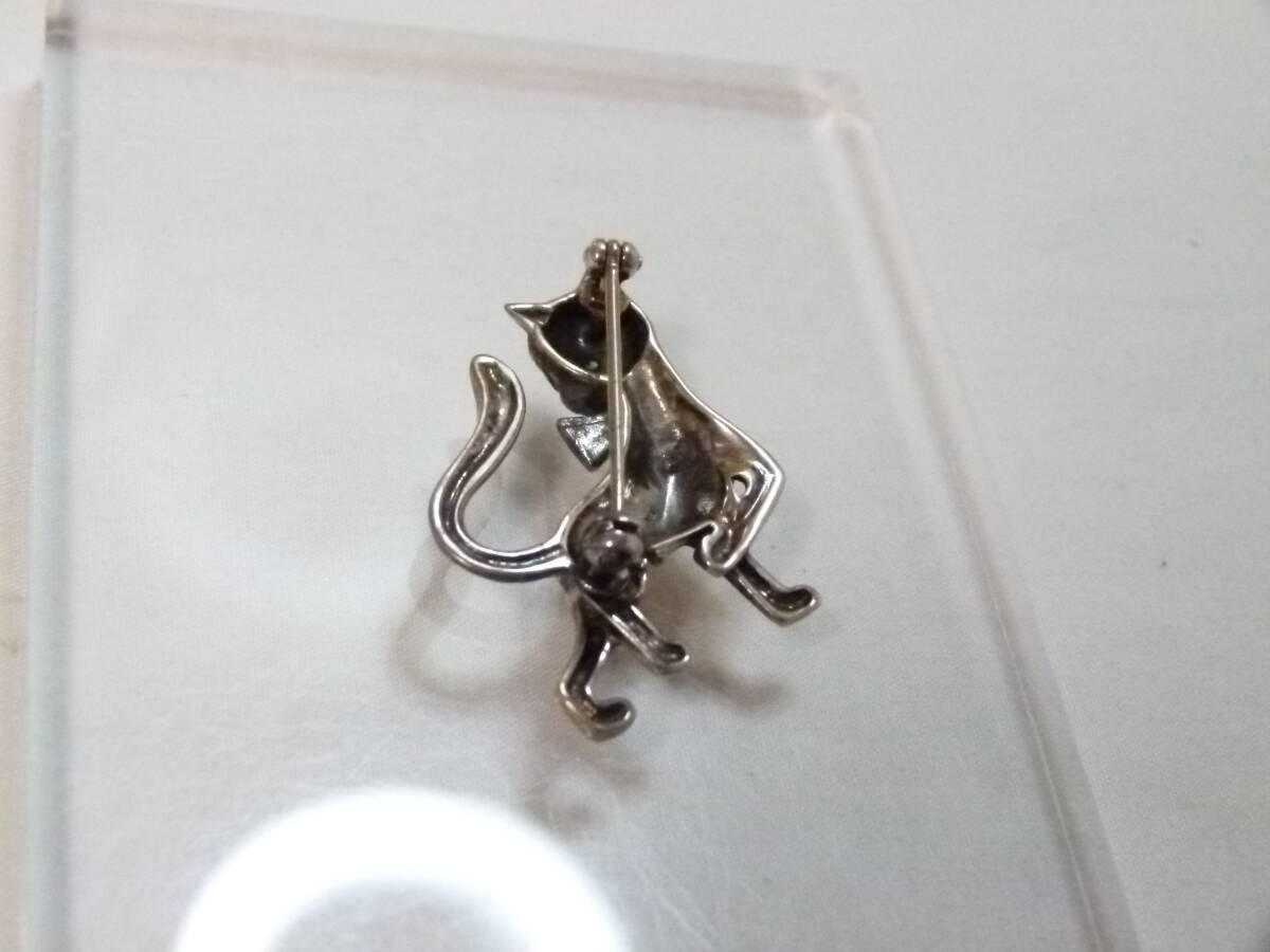 【送込】【アクセサリー・銀】猫型ブローチ 銀製 シルバー925 刻印有 9.2g【送料無料】