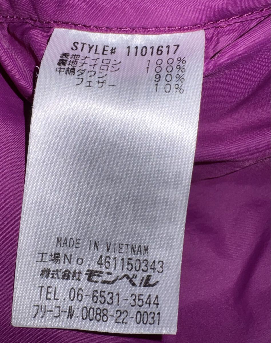 表地 裏地 ナイロン100% 中綿 ダウン90% フェザー10%
