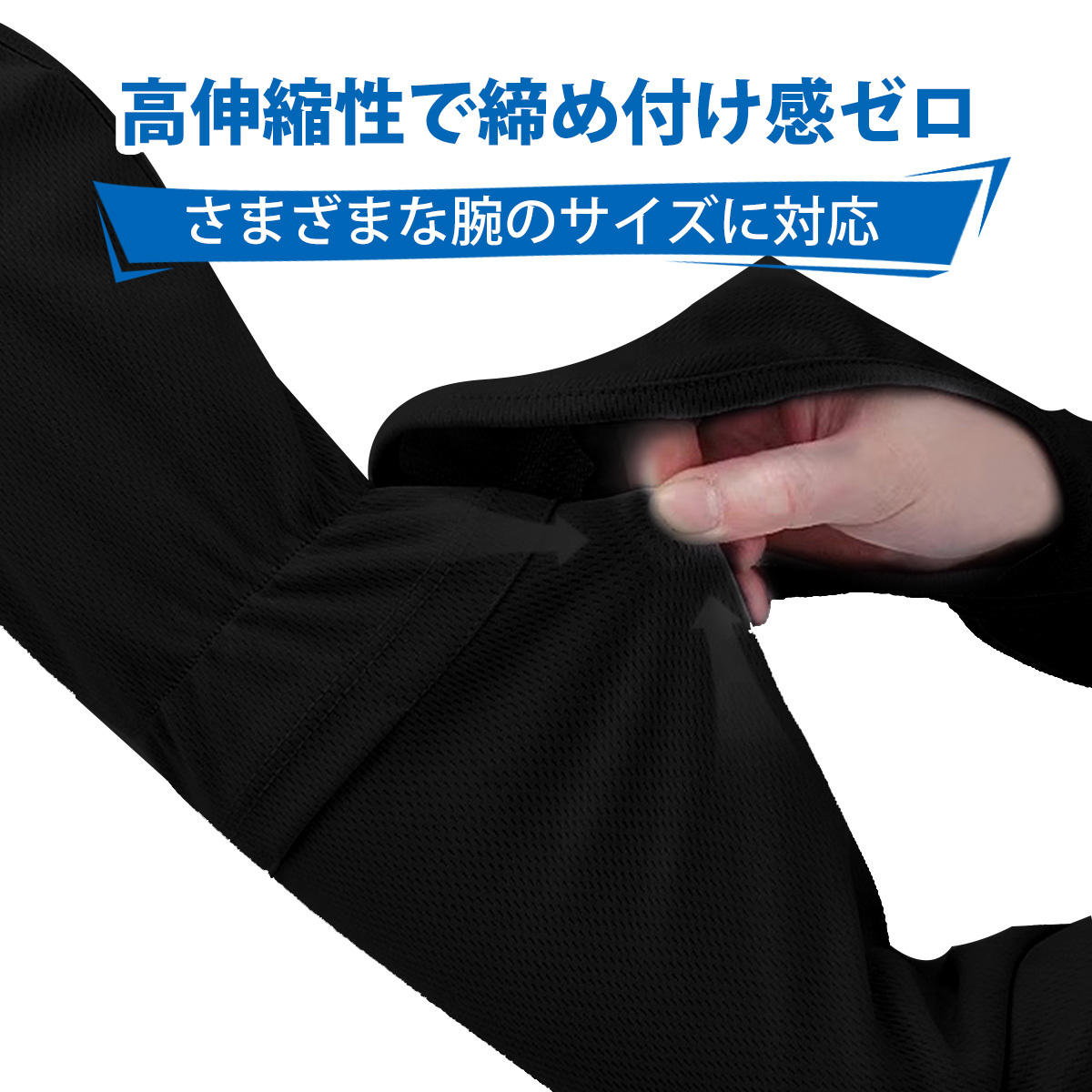 | この商品について | 【冰糸凉感素材】:超薄型の凉感面料は通気性に優れ、蒸れることがなく、夏の炎暑をしっかり防ぎます。洗濯を繰り返しても色落ちしにくく、肌に優しい柔らかさで長時間着用しても疲れません。 【高弾力・ゆとり設計】:高弾性の伸縮面料を使用し、40~85kgの方まで幅広く対応可能です。ストレッチ性が高くて変形しにくく、体の動きに追従して窮屈感を与えません。腕回りも自由に調整でき、ズレ落ちにくい安心設計です。 【指通し・タッチパネル対応】:独自のフィンガースリーブデザインが中指をしっかりと固定し、スリーブのずれを防ぎ、指先を全方位から保護します。タッチスクリーン操作もスムーズで、スリーブを外さずにスマートフォンを操作できます。 【腕時計用通気孔】:手首部分に隠し式の通気孔を設け、腕時計をつけたままでも自由に見ることができます。通気孔から空気が流通し、さらに清涼感を高め、長時間着用しても蒸れません。 【UPF50+厳選防UV】:UPF50+の防紫外線機能で、99%の紫外線を遮断します。腕から手の甲まで広範囲を覆い、自転車通勤・ドライブ・ハイキングなど屋外での活動時に、肌を紫外線から全面的に守ります。 |