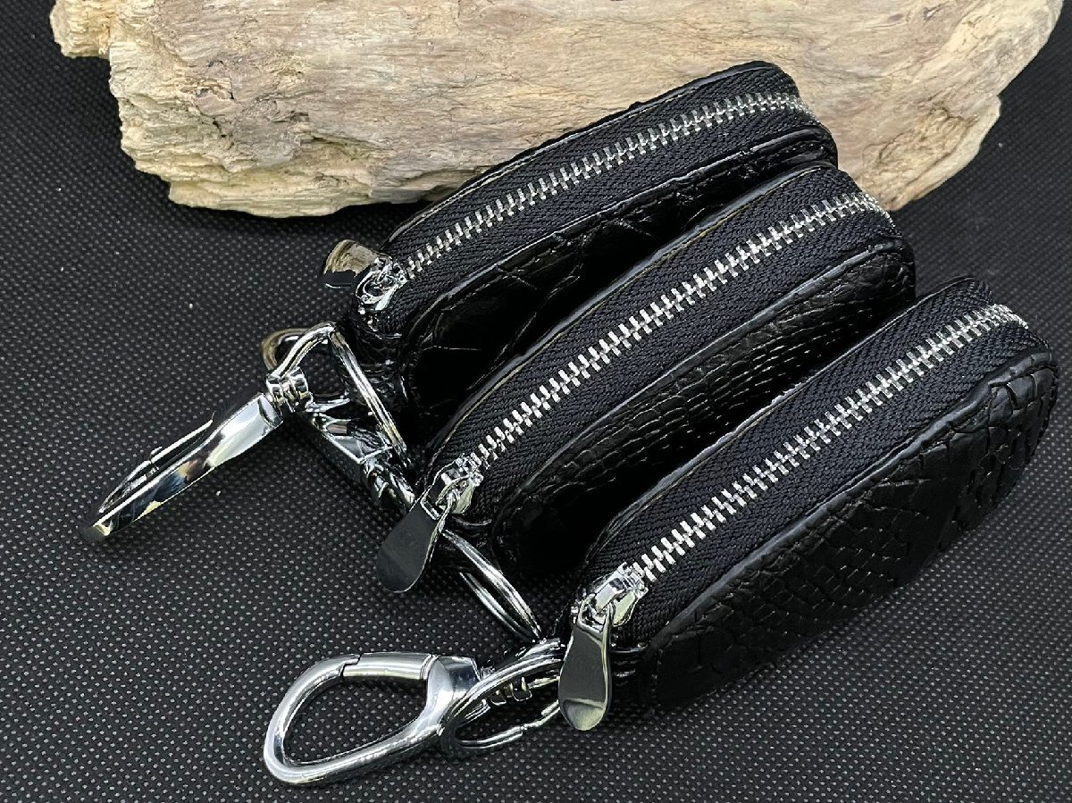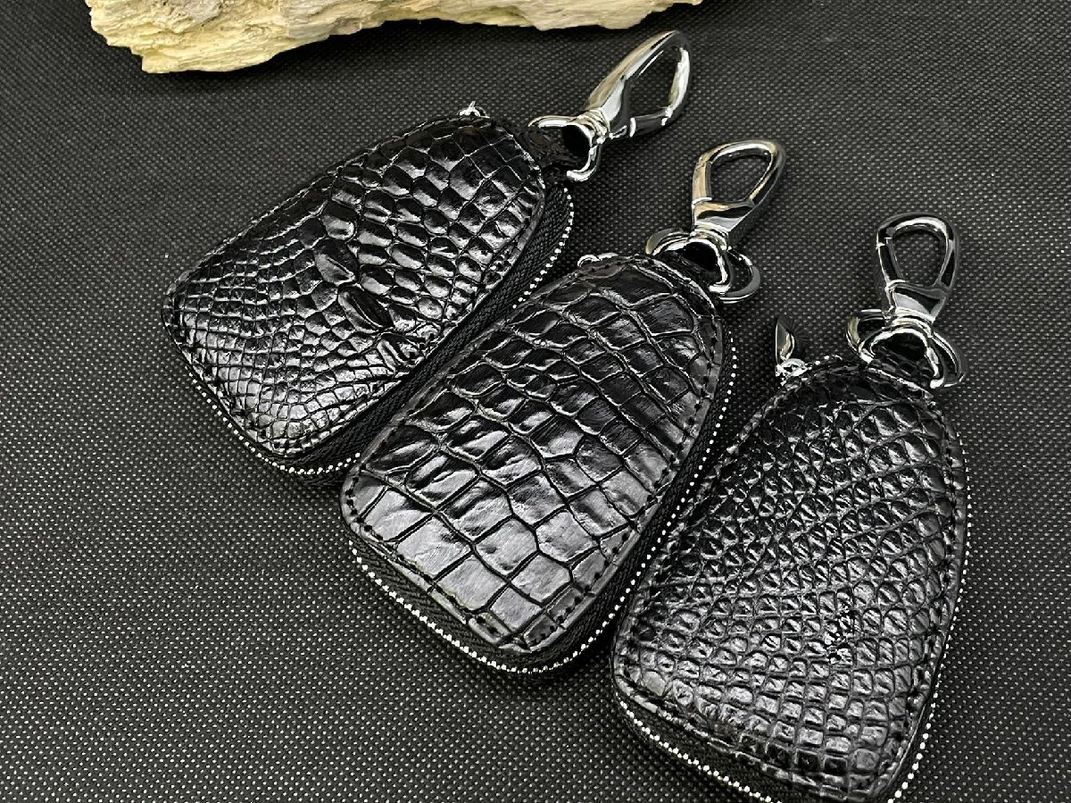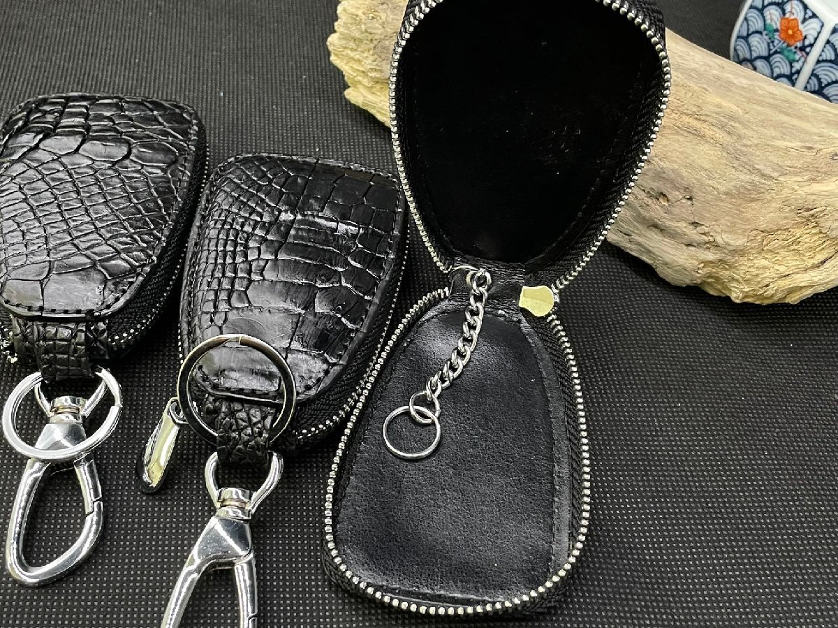 1円 3点セット クロコダイル キーケース 本物 ワニ革 鍵入れ 鰐皮 フック スマートキーケース 黒 キーホルダー ブラック