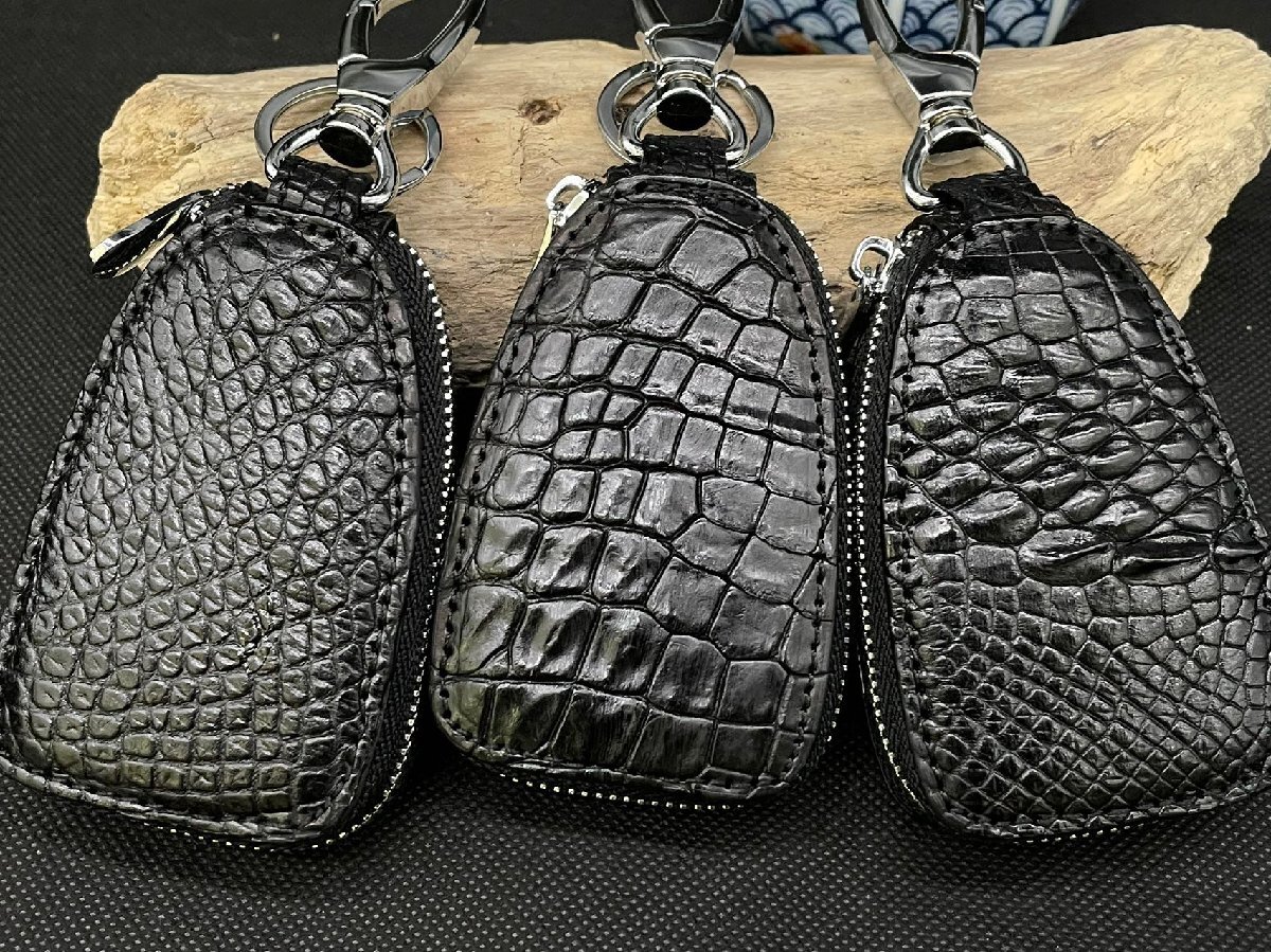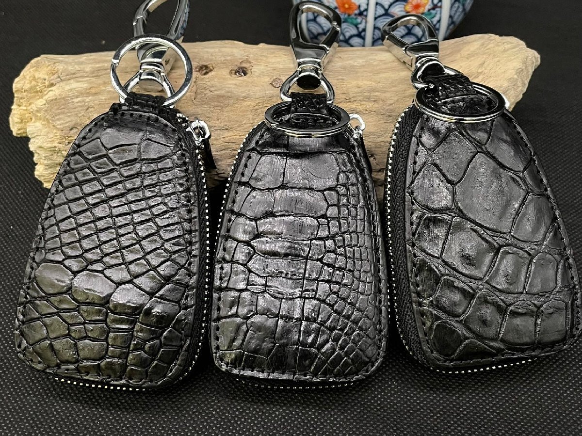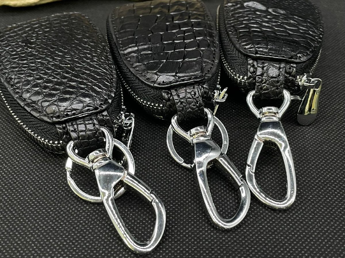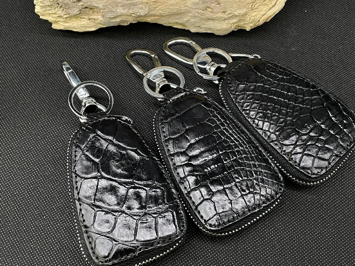 1円 3点セット クロコダイル キーケース 本物 ワニ革 鍵入れ 鰐皮 フック スマートキーケース 黒 キーホルダー ブラック
