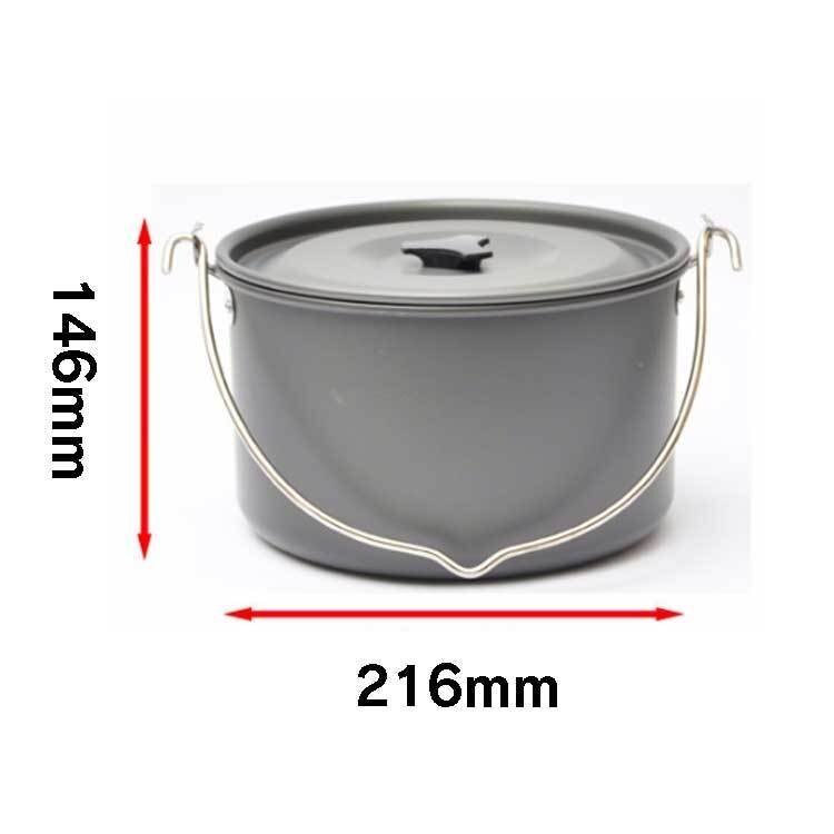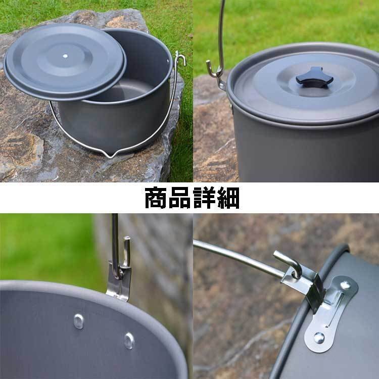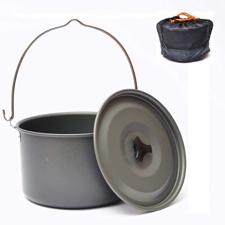 ◆キャンプ用鍋 アルミクッカー 吊り鍋 軽量 アウトドア鍋 キャンプ 釣り アルミニウム製 収納網袋付き 熱伝導が良い 吊り下げ式 4L 大容量 4-6人家族向け 蓋付き HIK216