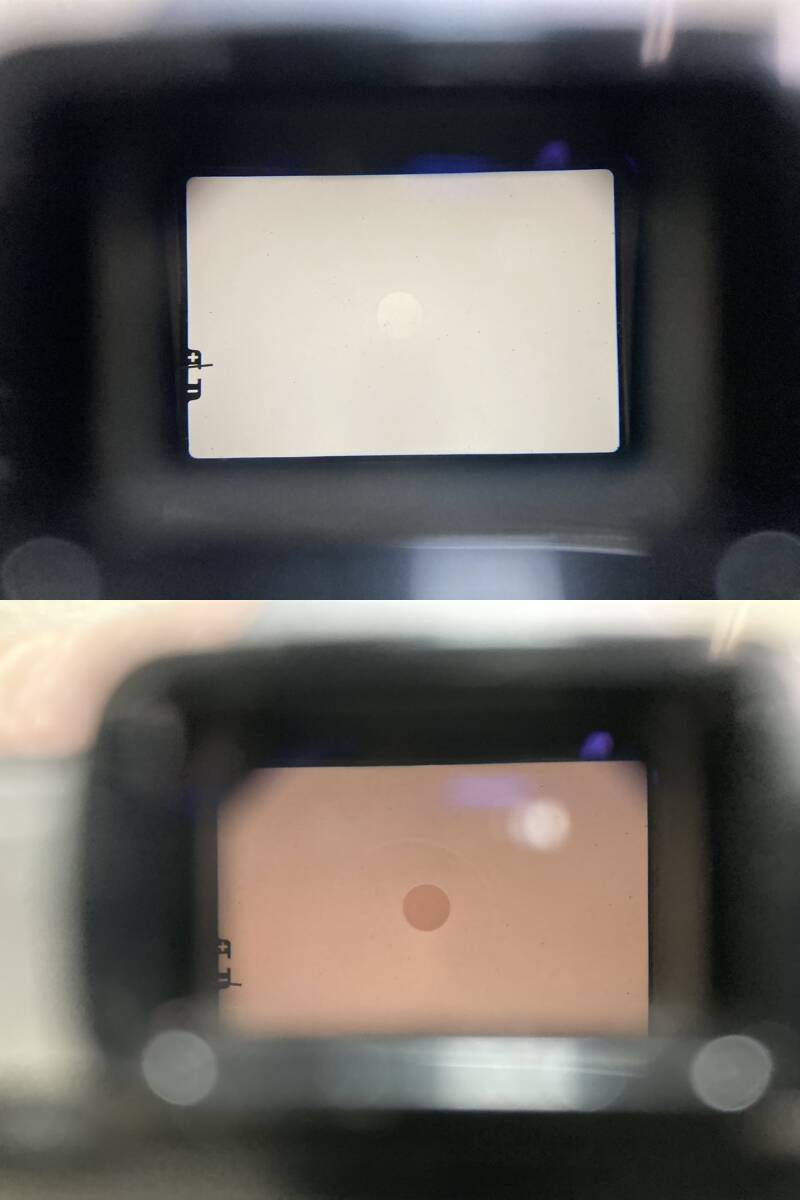 光の強さやレンズの絞り、シャッタースピードに応じて露出計が動いていることを確認しています。