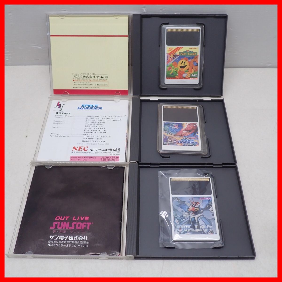 | PCE PCエンジン Huカード スペースハリアー/パックランド/ボンバーマン’94/キックボール 等 まとめて8本セット 箱説付 動作未確認 ■こちらの商品は【動作チェック等】を一切行っていないため、どの様な不具合が生じましても当店では交換・返金・返品等の対応はできません。 ■ご理解ご納得いただける方のみご入札をお願いいたします。 ■ケースにスレ、キズ、汚れ、黄ばみ、ヤケ、イタミ、シールの貼付があります。 ■取扱説明書にスレ、汚れ、黄ばみ、ヤケ、シミ、破れ、折れ、シワ、イタミ、ホチキス部分のサビがあります。 ■カードにスレ、キズ、汚れ、黄ばみ、ヤケ、イタミがあります。 ■上記以外は未チェックです。 ■商品の状態・セット内容につきましては写真をご確認ください。 ■一部を除いての発送は行っておりません。 ■写真のものが全てです。付属物の有無や状態については写真からご判断ください。 ■チェックに使用したモニターや機器等は、特に表記がないかぎりは付属いたしません。 ■古いものですので、当方のチェック時に動作を確認できたものでも、必ずしも商品到着後にも同じように動作することを保証するものではありません。 ■動作確認済み品で、一部のソフトだけが動かない場合など、ソフトと本体の相性による問題については当方の責任の範囲外となりますのであらかじめご了承ください。 ■中古品となりますのでソフトや本体等のメモリー、バックアップ電池等については動作を保証いたしかねます。 ■商品によりますが、発売されてから10年以上経過している中古品であることをご理解いただいた上でご入札をお願いいたします。なお、新品や美品、そのほか特記事項がある場合は別途明記します。 ■ご落札いただいた本体及び箱や取説、付属品、梱包材などは1つでも廃棄や破損をしないようにお願いいたします。 ■商品のご落札後、廃棄や破損をした場合、あるいは【修理や整備、カスタム、付属物の抜き取りやページの抜き取り/書込み等、ご落札者様の目的に応じて何らかの手が加えられた商品】に関しましては、問題があった場合でも対応や返金などの対処ができませんのでご注意ください。 |