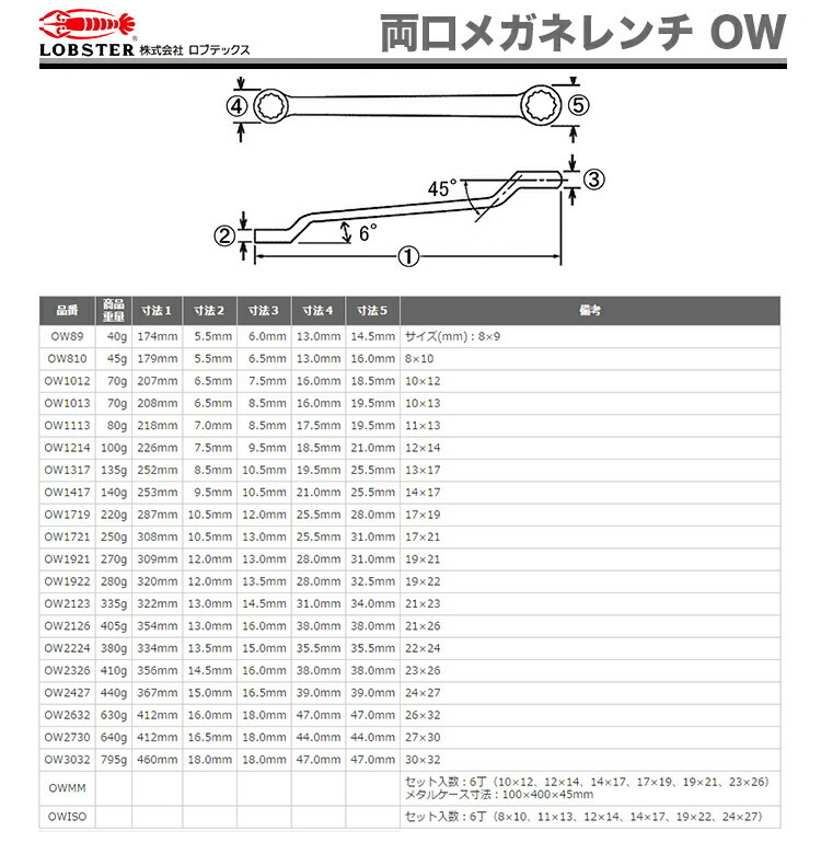LOBSTER(エビ印) 両口めがねレンチ OW1113