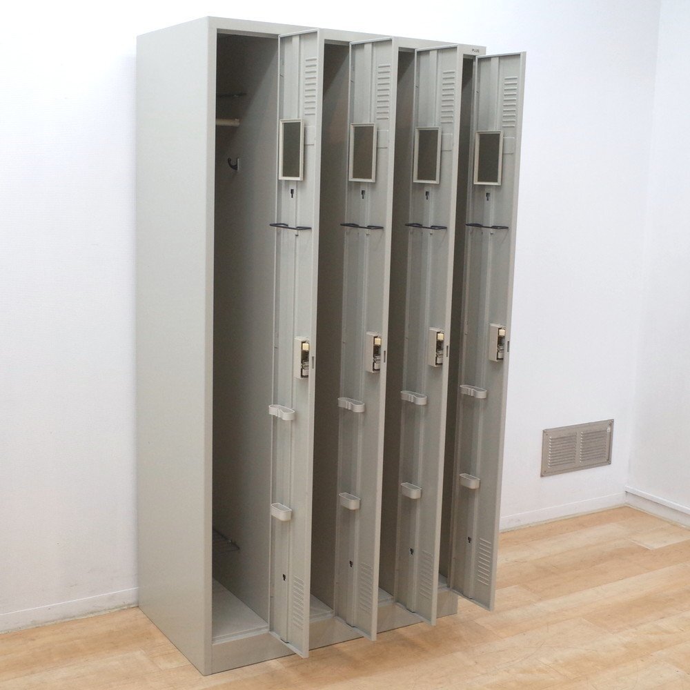 プラス LKロッカーの4人用スチールロッカーです。 オフィス空間になじむグレーカラー。 網棚上下から鏡、傘立てなどオフィスロッカーに必要な機能が揃ったおすすめの商品です! 外装に多少の使用キズはございますが、大きなへこみなどはなく問題ございません。 ぜひ、店舗裏や医療機関、スポーツ施設などに拡充はいかがでしょうか? |