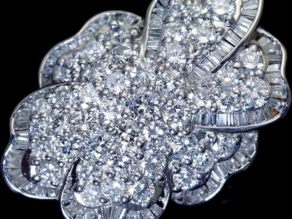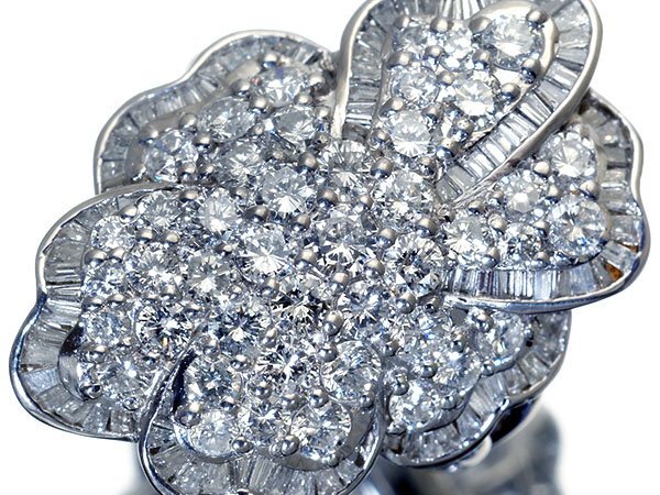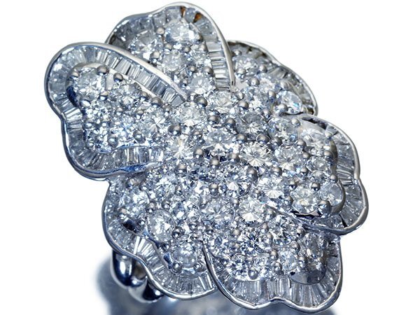 極上品!超豪華なフラワーデザインで美しい輝き放つ極上天然ダイヤモンド総計3.85ctを素敵に宝飾した、超高級Pt900リングを1円から特別大放出致します!
