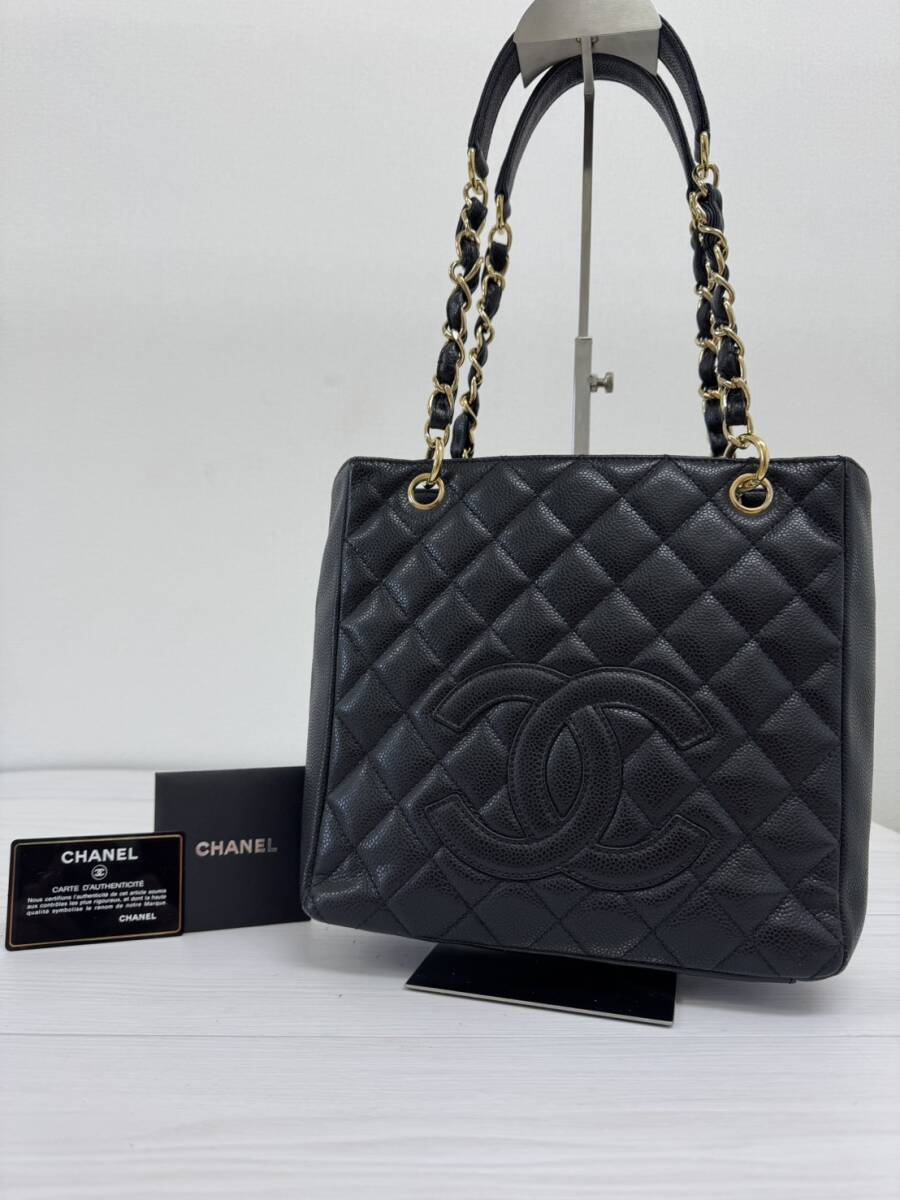 【美品】CHANEL シャネル キャビア チェーントートバッグ ショルダーバッグ ココマーク ギャランティカード シリアルナンバーシールあり