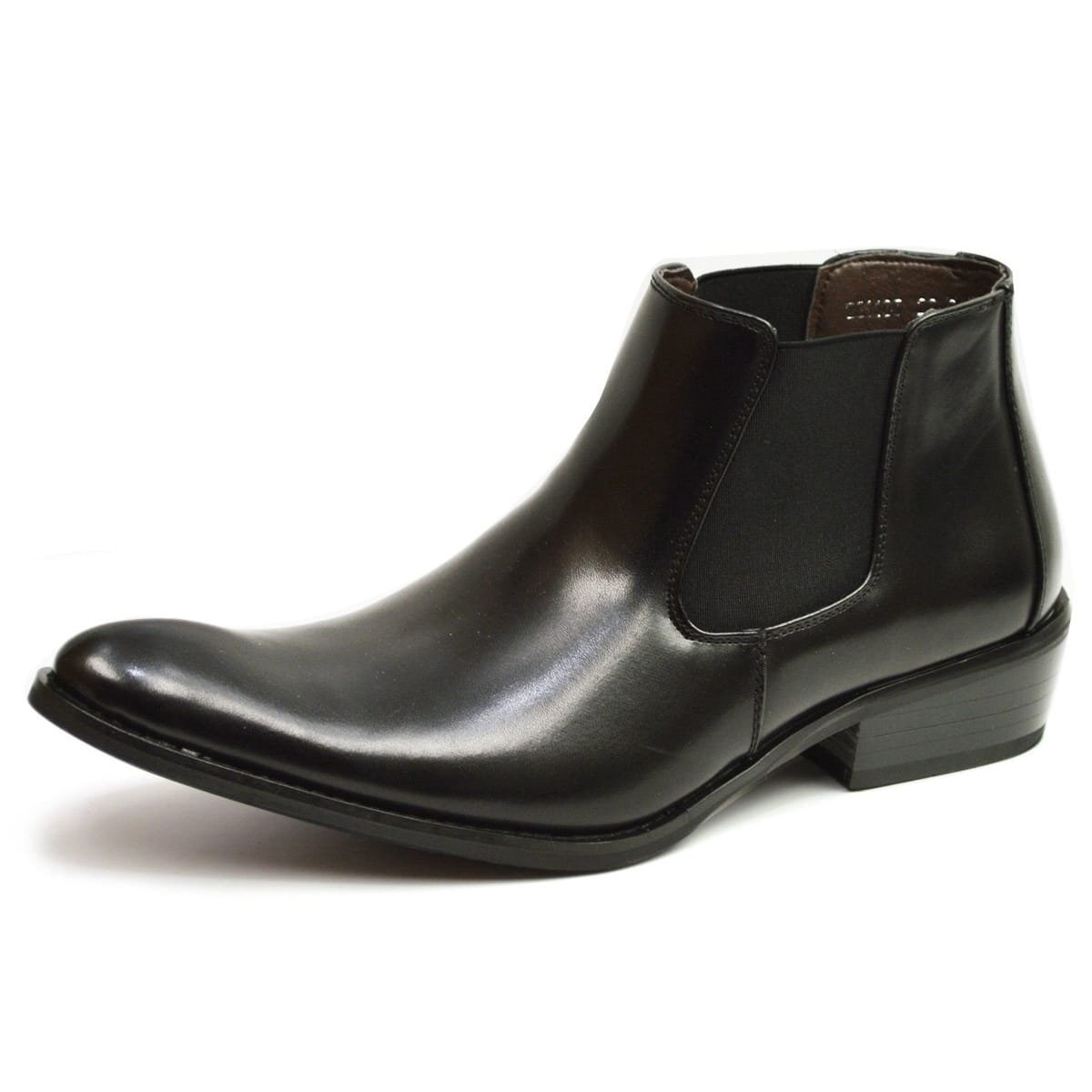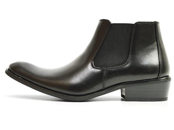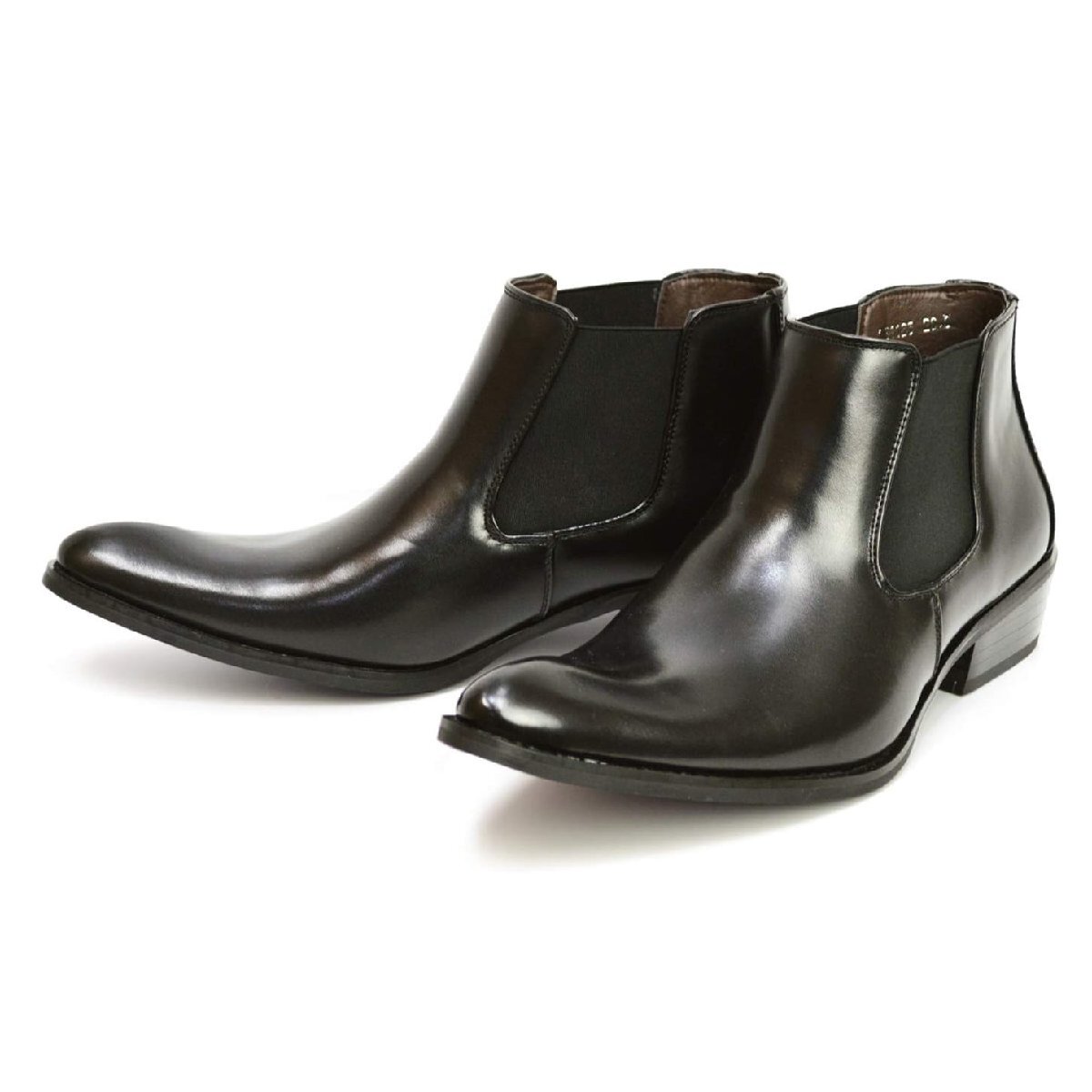 新品■25cm ビジネスブーツ フォーマル サイドゴア 4.5cm ヒールアップ ポインテッドトゥ メンズ ショートブーツ カジュアル 男 靴