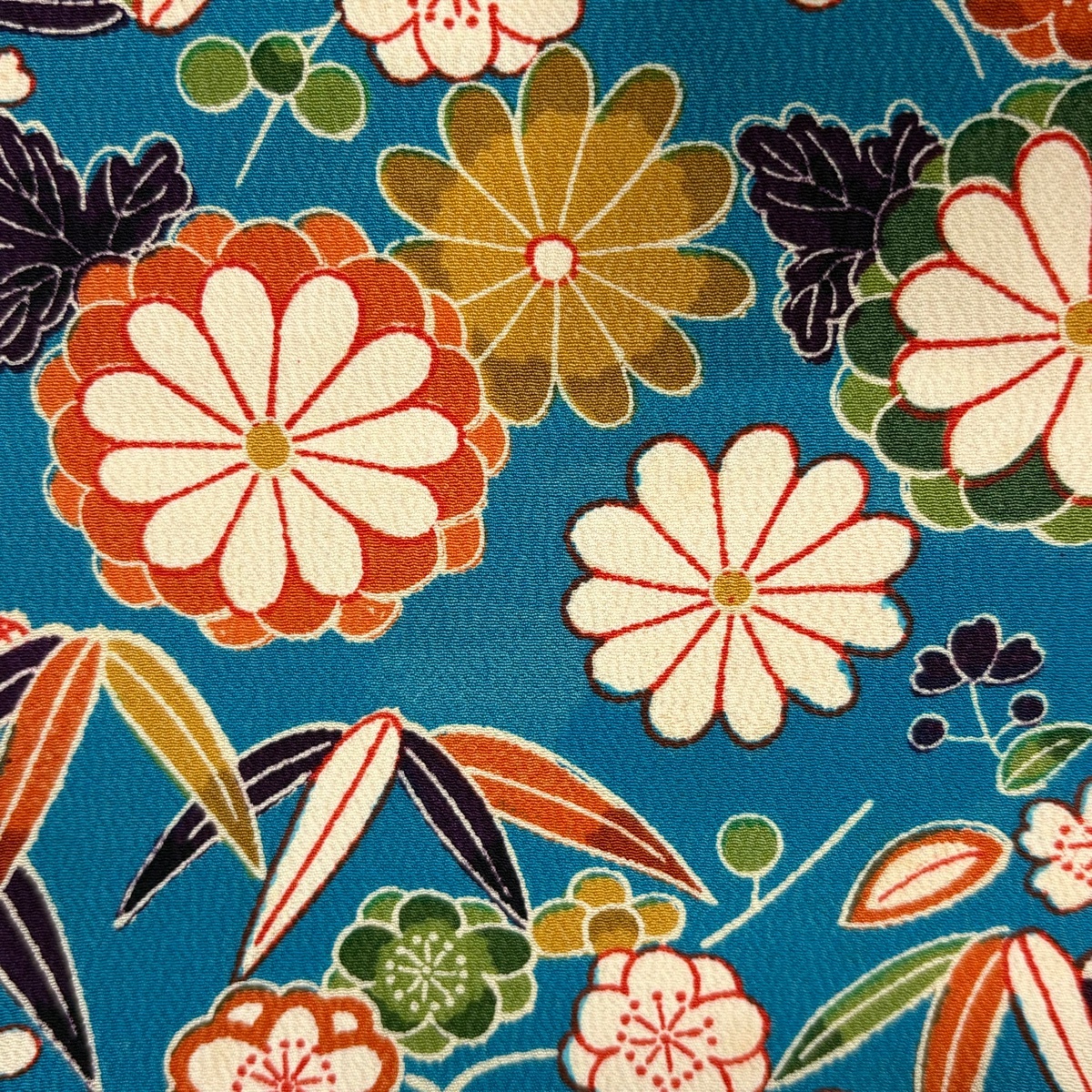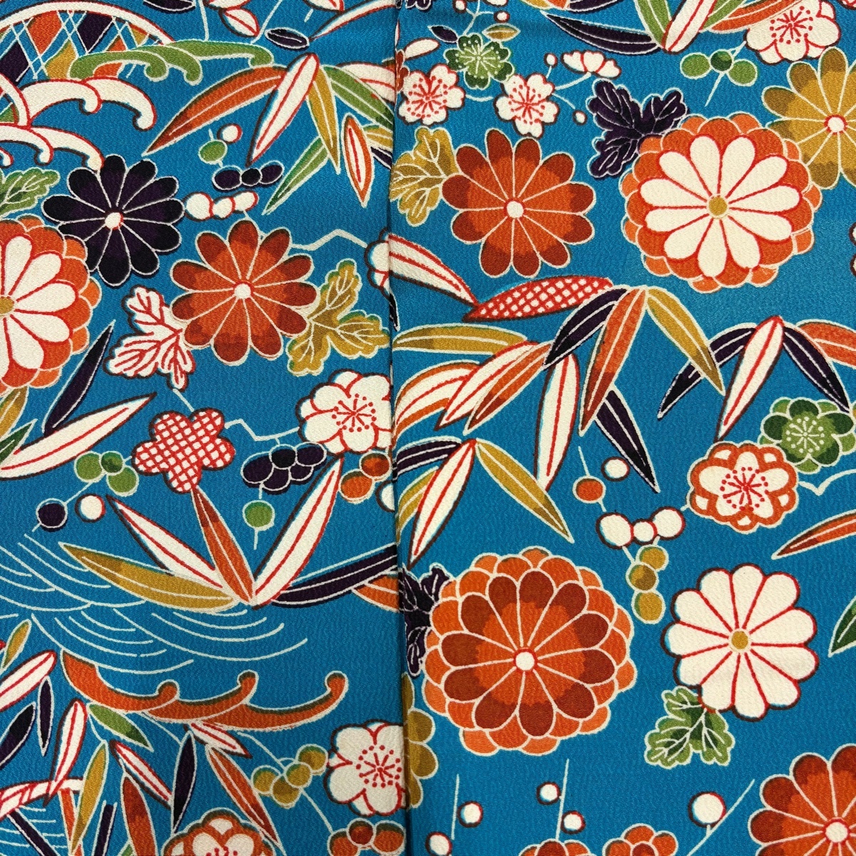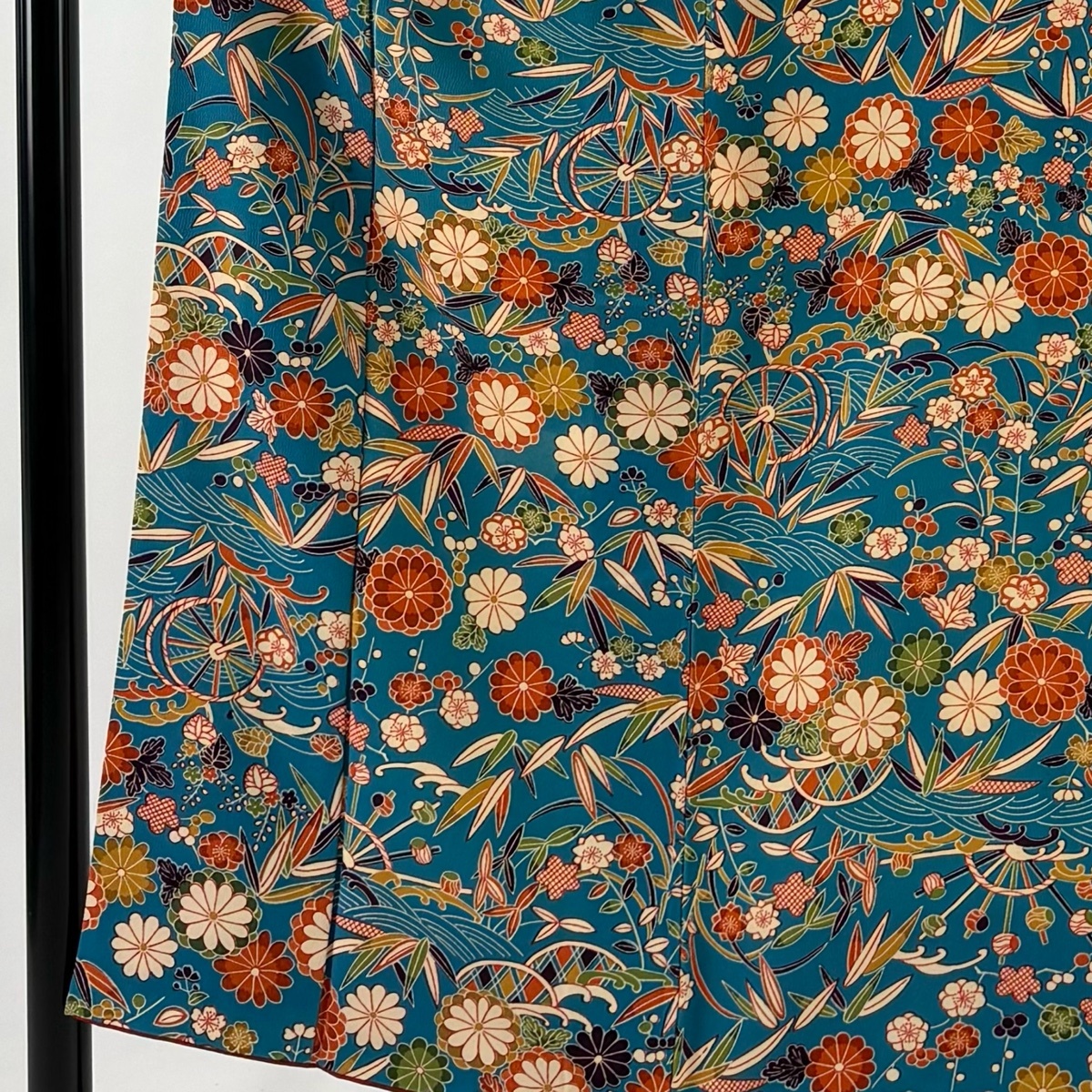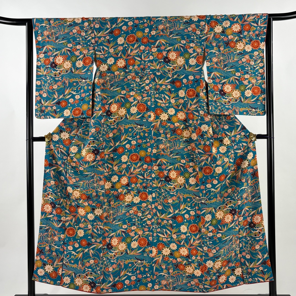 | 小紋 秀品 菊 波 青緑 袷 身丈152.5 裄丈63.5 S 正絹 【中古】 |