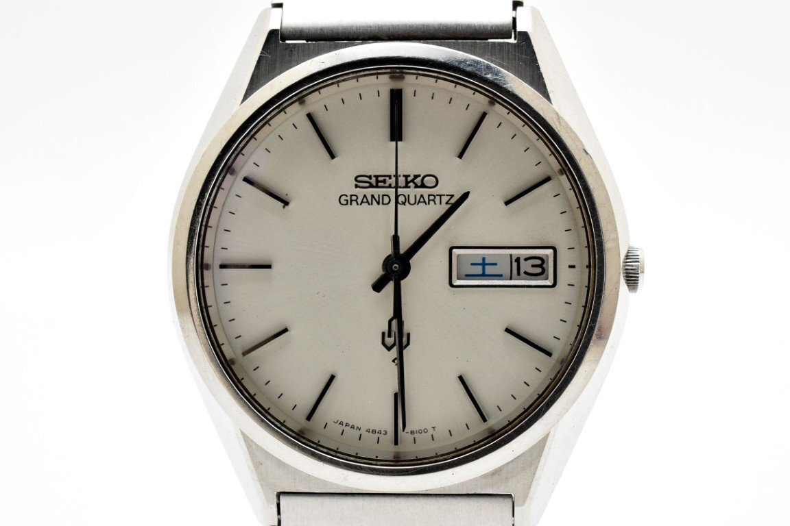 SEIKO GRAND QUARTZ セイコー グランド クォーツ ラウンド 腕時計 メンズ 3針 デイデイト ホワイト シルバー 4843-8110