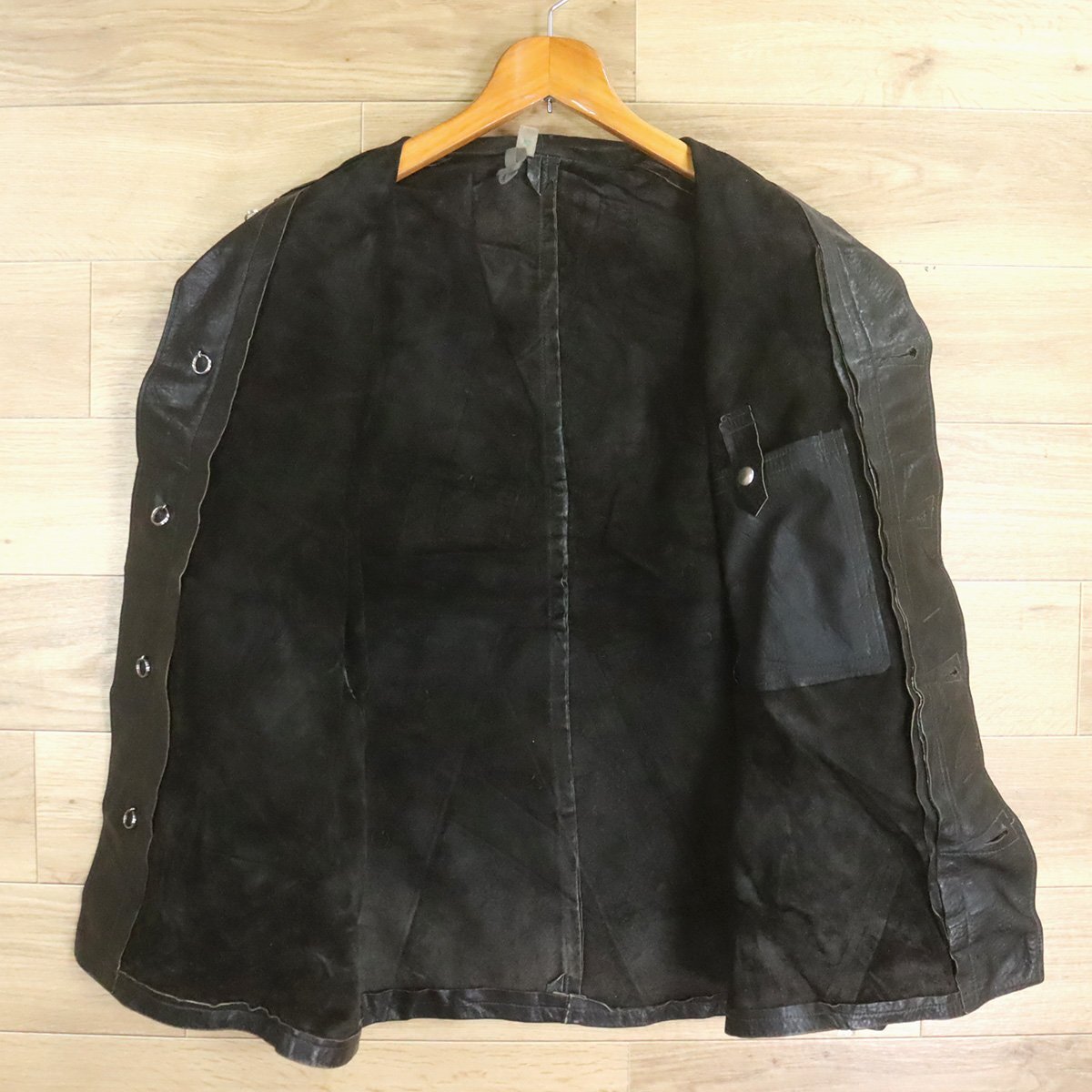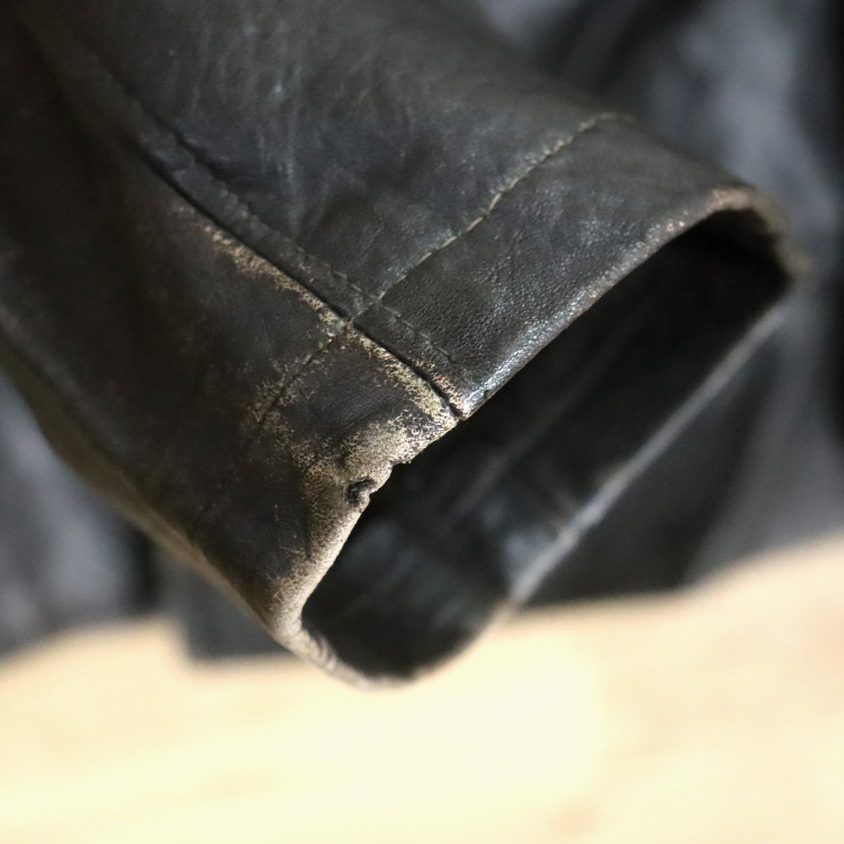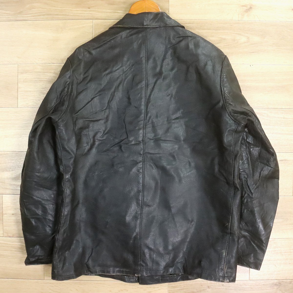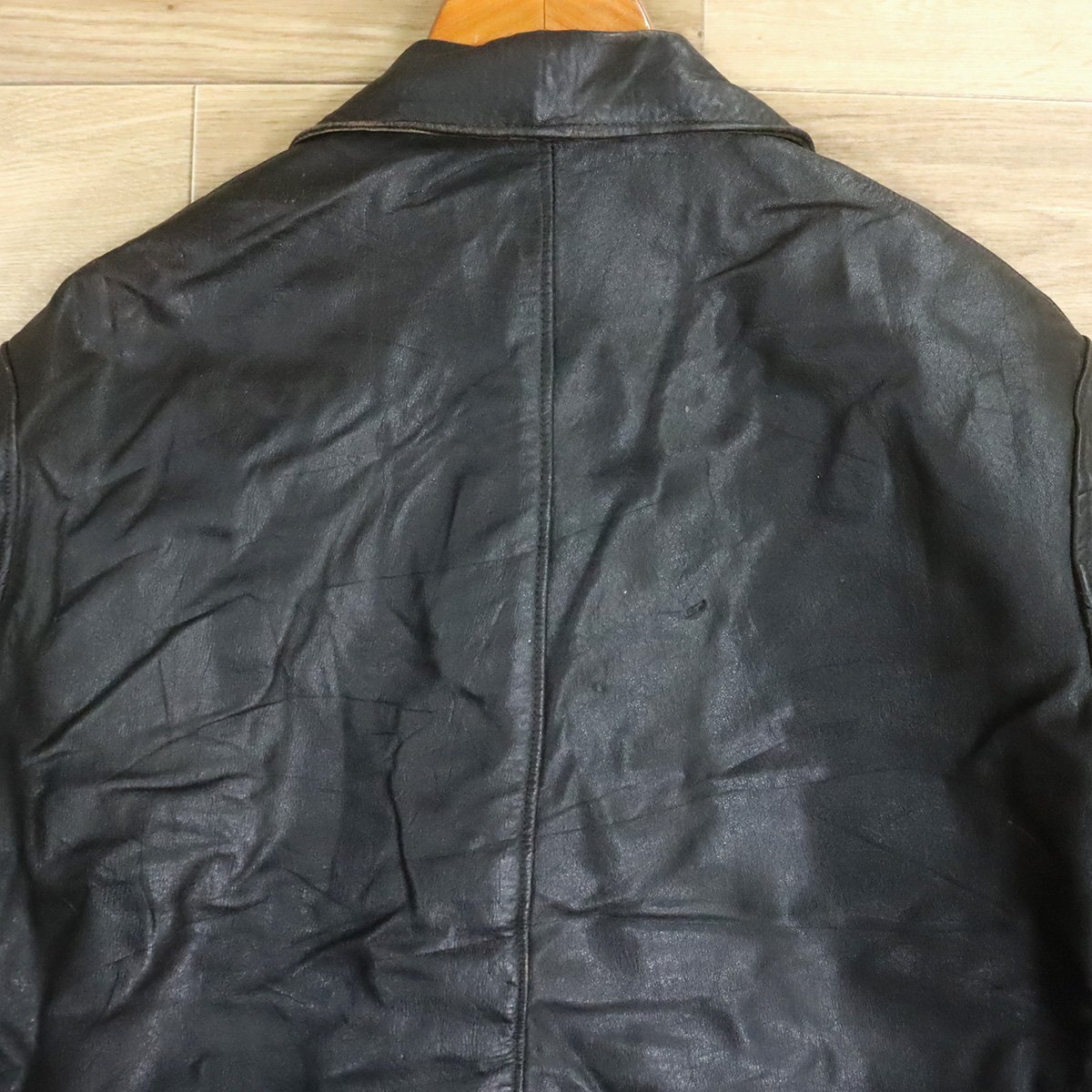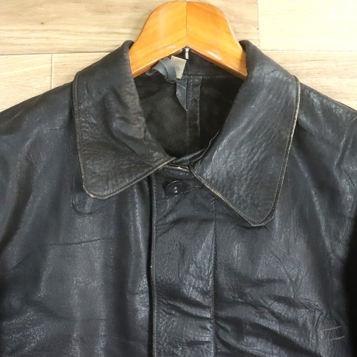 A6S/D12.3-5 ユーロ古着 レザージャケット 本革 レザーカーコート ハーフコート 革ジャン 皮ジャン 50 ブラック ヴィンテージ