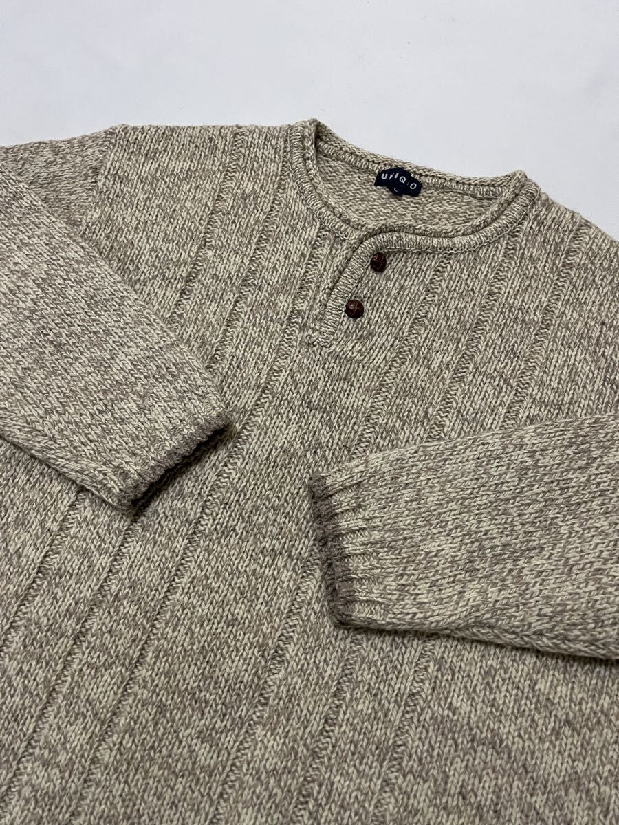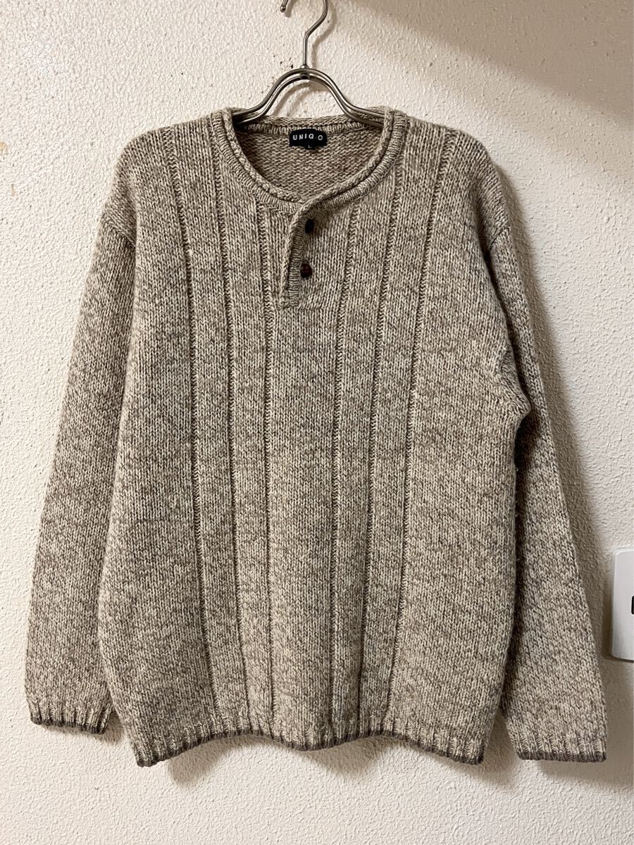 ヘンリーネックデザイン、ボタンはくるみボタンを使用している、当時のUNIQLOらしいデザインの1枚です。