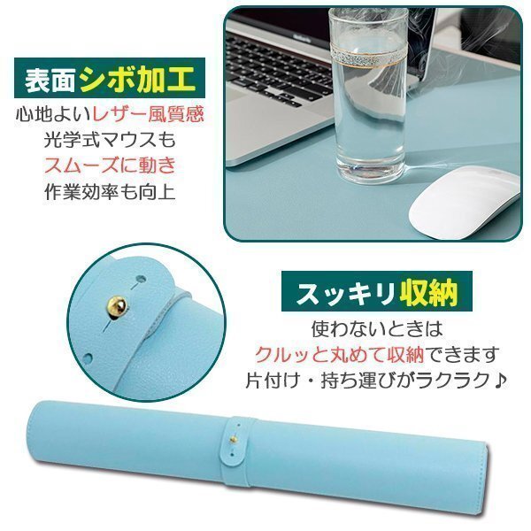 デスクマット マウス対応 レザー デスクマット 大型マウスパッド 滑り止め 厚さ2mm 90×43cm 裏面 スエード 青
