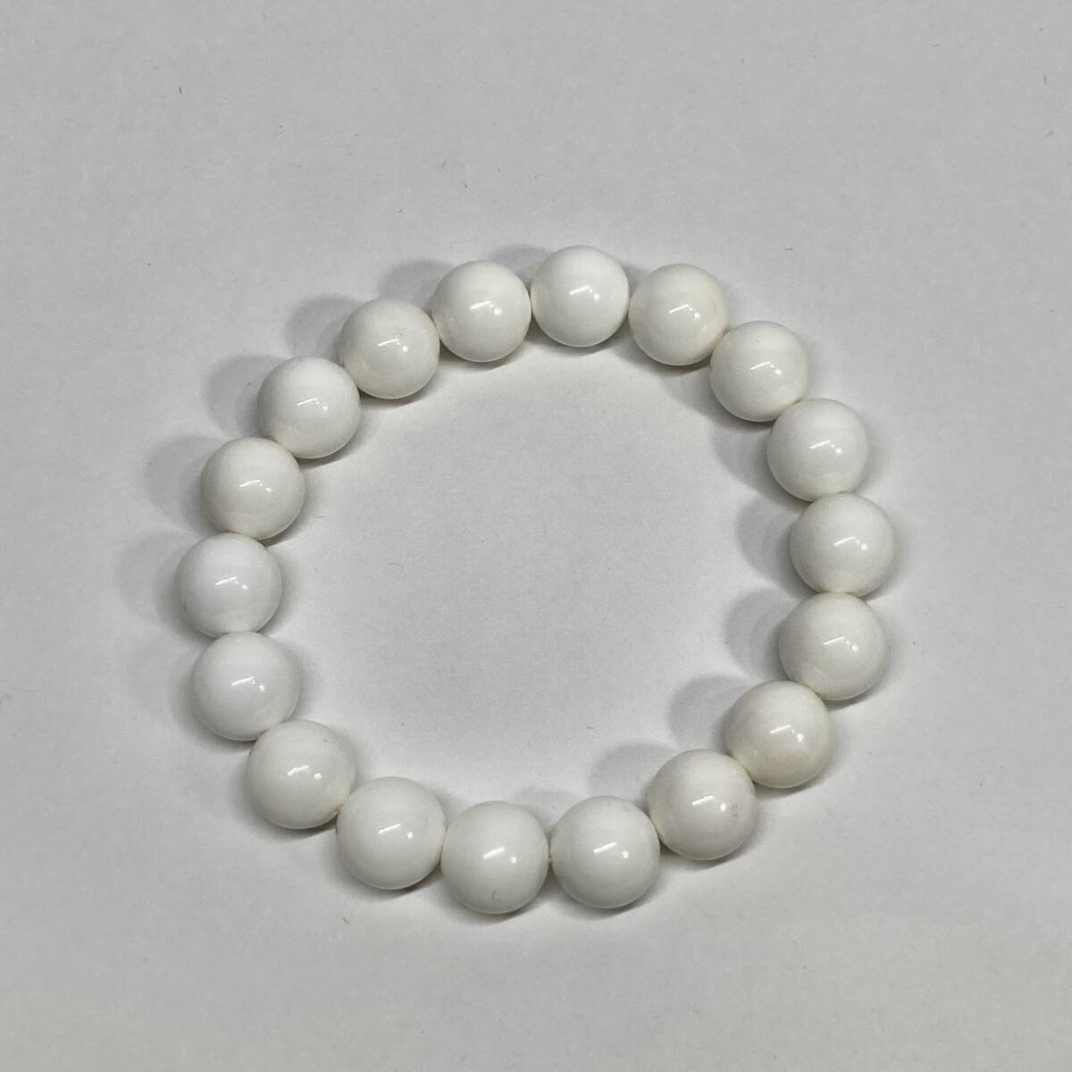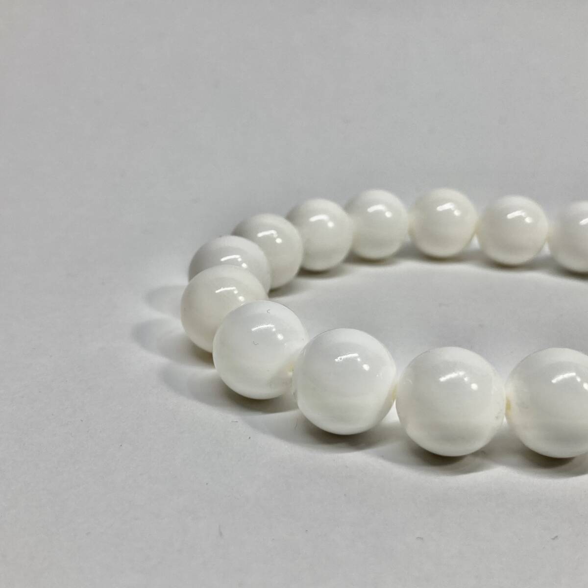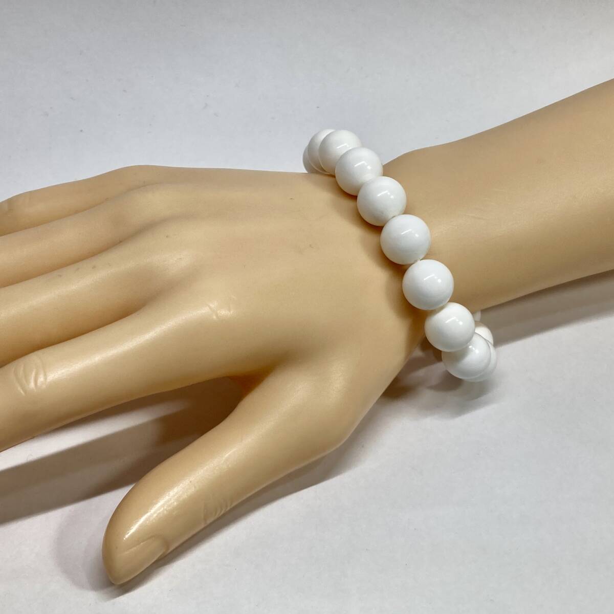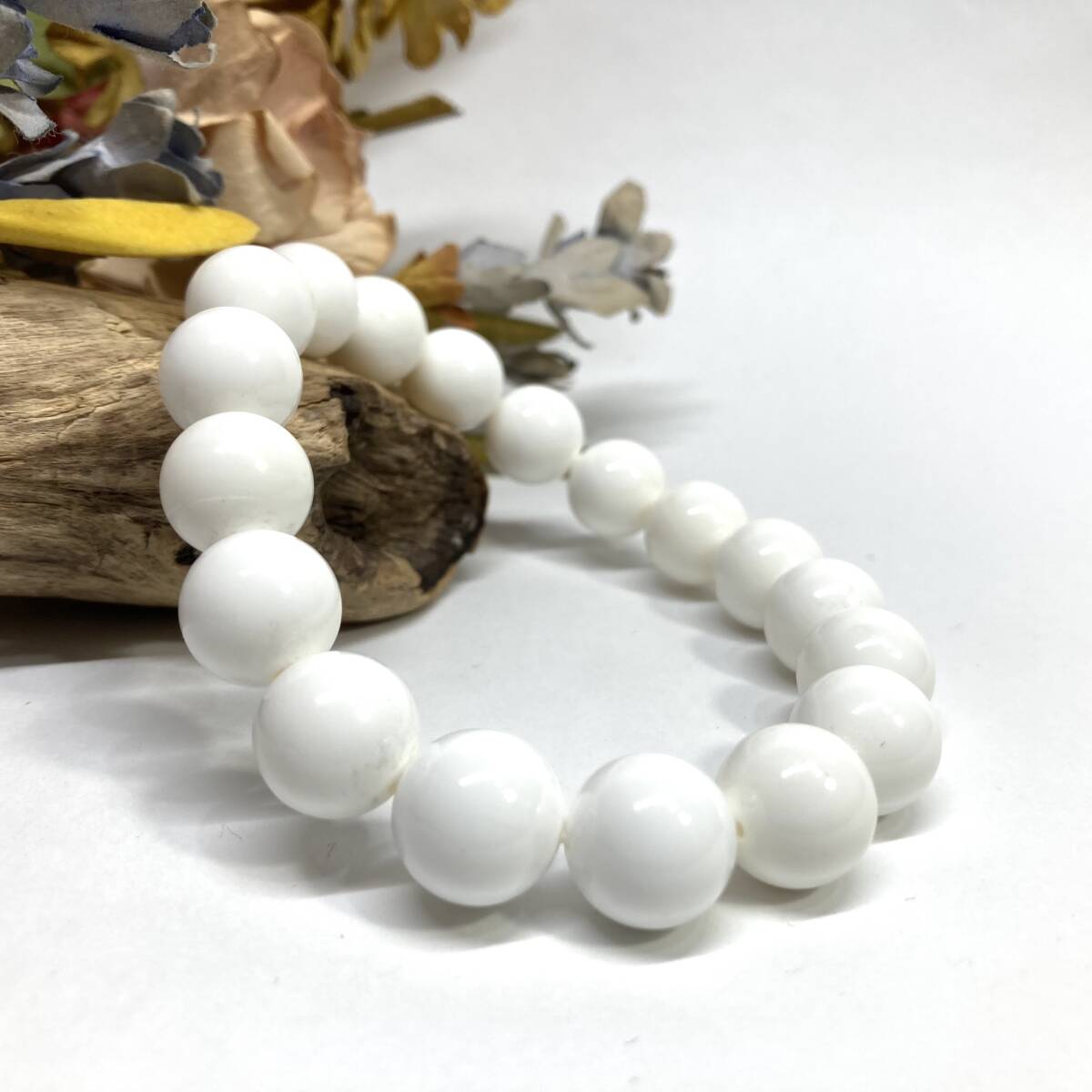 こちらは、ホワイトオニキスの12mm玉を使用したパワーストーンブレスレットです。シンプルなデザインですのでどんなコーディネートとも合わせ易いブレスレットです。程よくインパクトがある12mm玉を使用して内周約17cmです。(サイズ変更の場合は取引ナビにてご連絡をお願いします。) 数に限りがございますので気になる方はお早めにどうぞ。