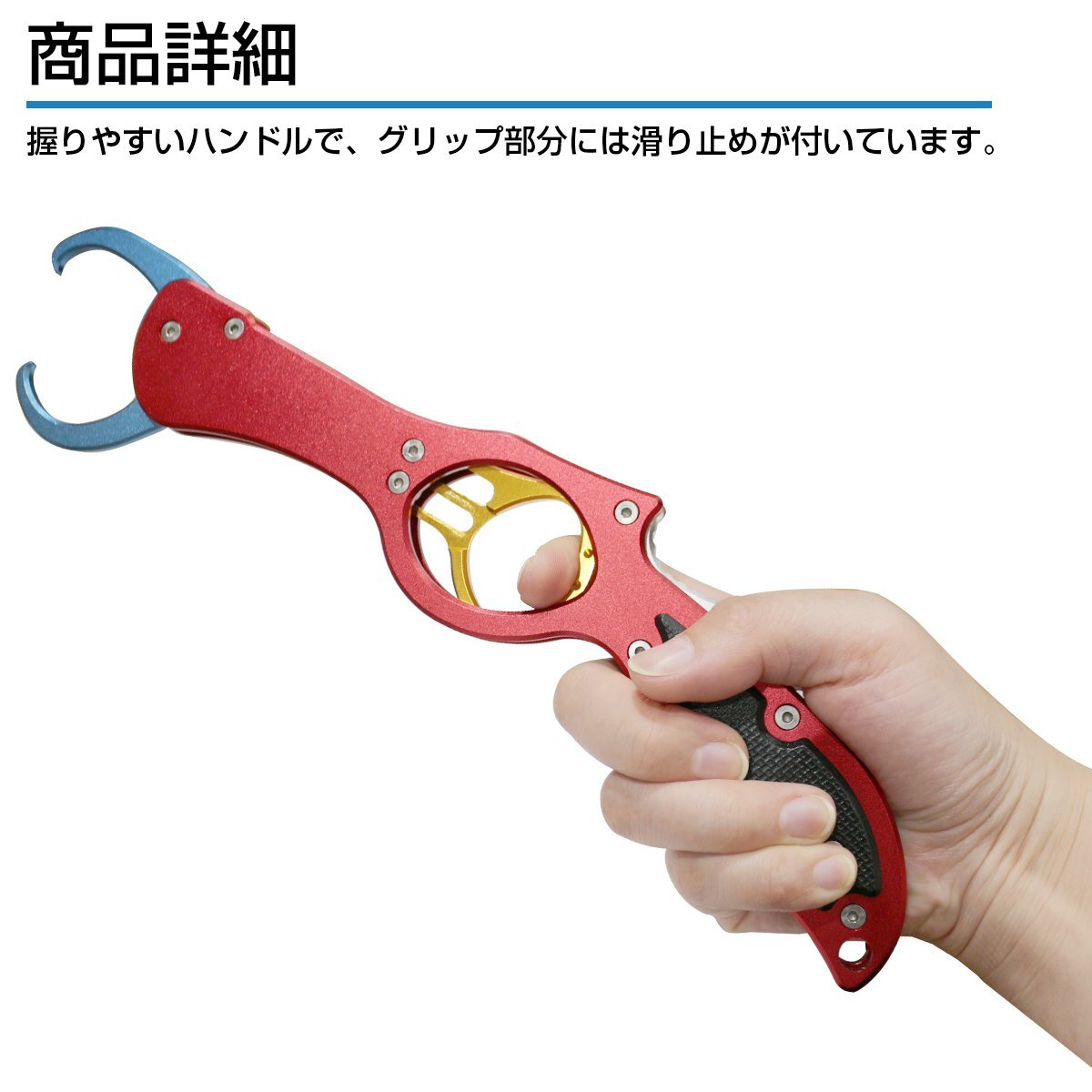 釣り 小物 魚掴み器 フィッシュグリップ フィッシンググリップ フィッシュキャッチャー フィッシュグリッパー アルミ製 レッド 赤
