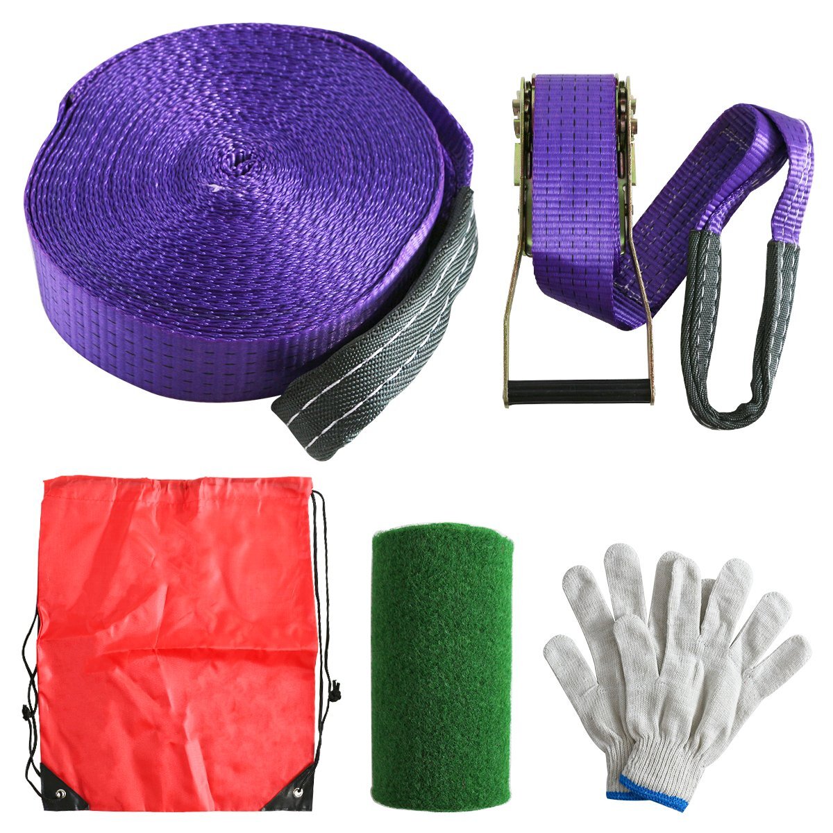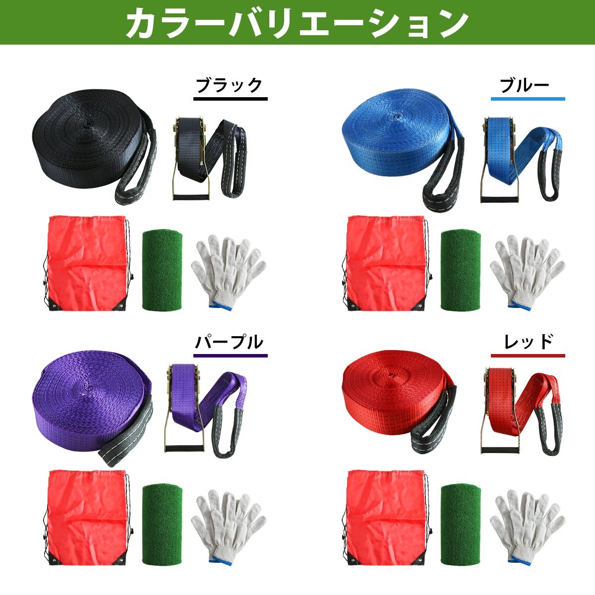 [ツリーウェア付] スラックライン Slackline 遊びながらバランス感覚/体幹強化 筋トレ 筋肉 バランスウォーカー 綱渡りスポーツ パープル