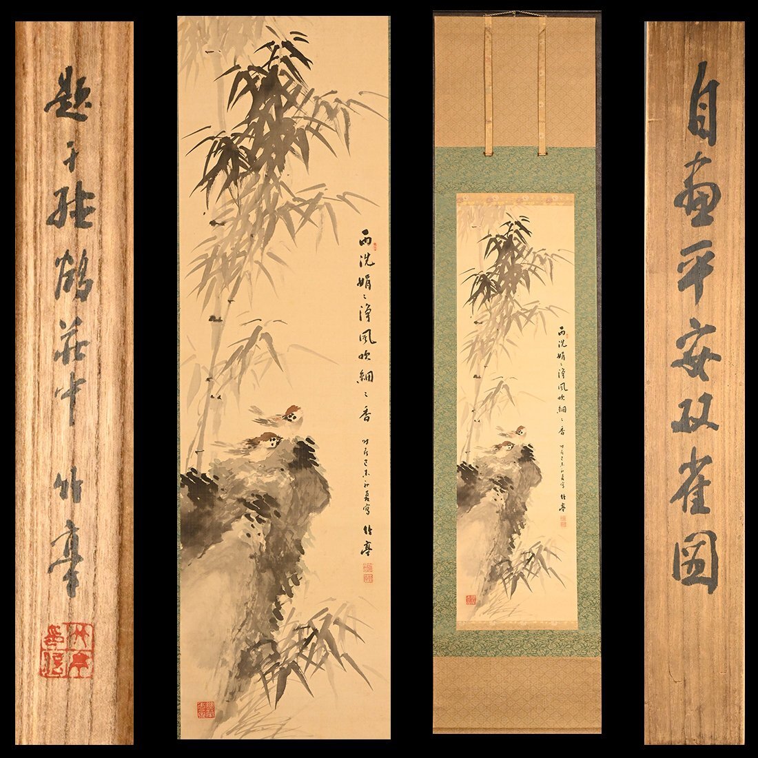 【永】a347【兵庫県の図書館や博物館の館長を歴任された歴史研究家遺族委託品】掛軸 竹亭花鳥漢詩幅 花鳥画人物画名品日本画