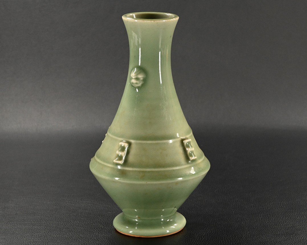【永】c292【兵庫県の図書館や博物館の館長を歴任された歴史研究家遺族委託品】中国陶磁器 清朝南京青磁 鬼面耳花入花瓶 優品