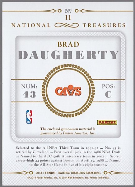 13-14 Panini National Treasures NBA Material Prime #11 Brad Daugherty (23/25)になります。