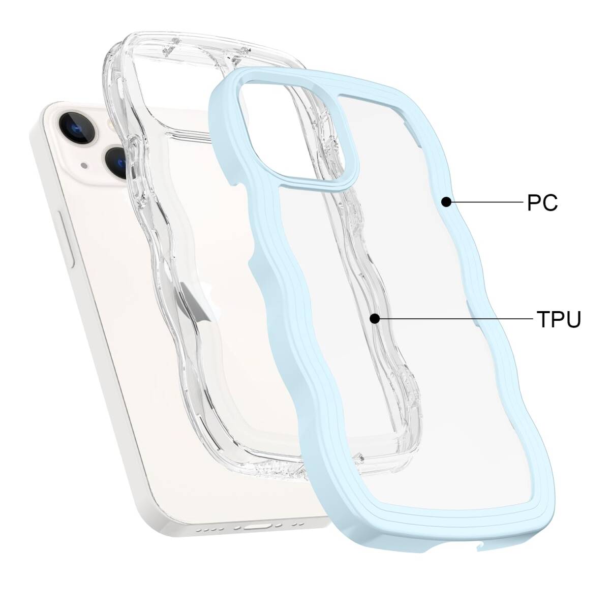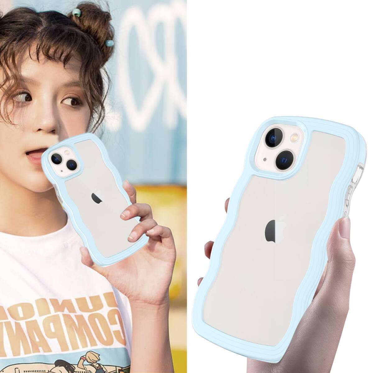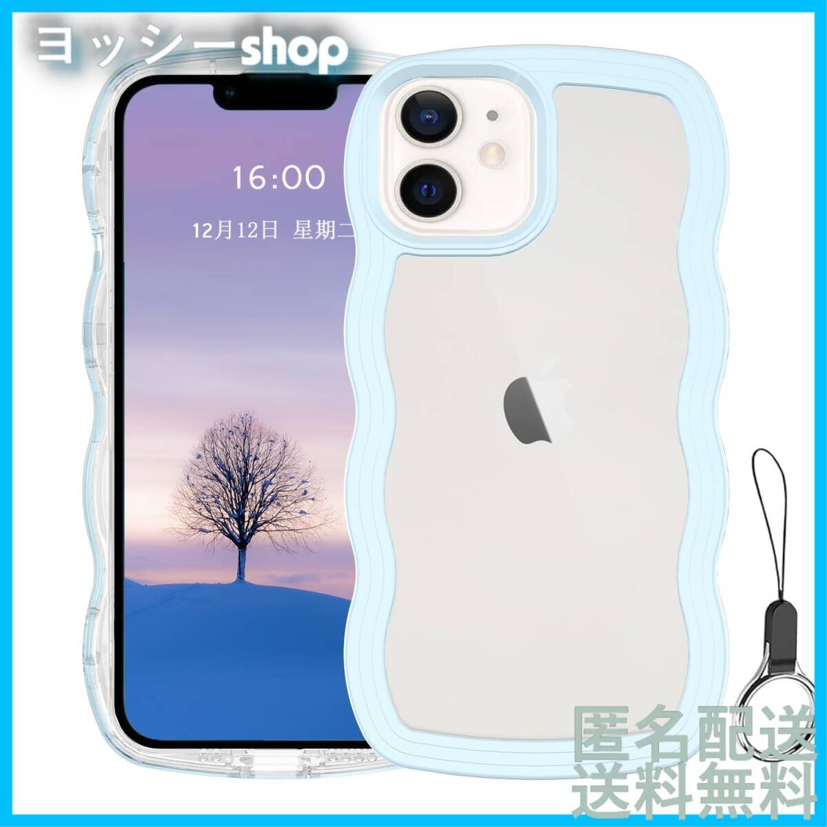 iPhone 12mini ケース クリア ウェーブ アイフォン 12mini TPU波状フレーム うねうね アイフォン12mini 滑り止め スマホケースウェーブ デザイン 手にフィット 韓国 可愛い 女性用 女子向け 透明 ケースカバー 人気 落下防止 耐衝撃 ストラップホール付き アイフォン12mini なみなみ ワイヤレス充電対応(iPhone 12mini-ブルー)