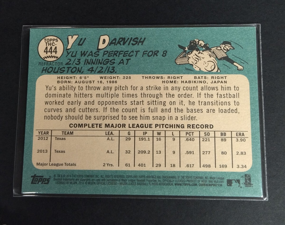 MLB 2014年topps heritage ダルビッシュ有(レンジャース) パープルリフラクター! No,THC-444。Rangers YU DARVISH chrome Purple Refractor